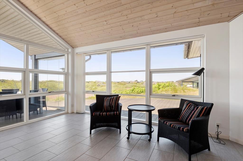 Es ist leicht zu verstehen, warum dieses wundervolle Whirlpool-Haus den Namen Horizont trägt. Es liegt nämlich oben auf einem Dünengrundstück, und von sowohl dem Wohnzimmer als auch der Terrasse aus können Sie weit über die schöne Landschaft von Rindby und bis zum Nordsee blicken.