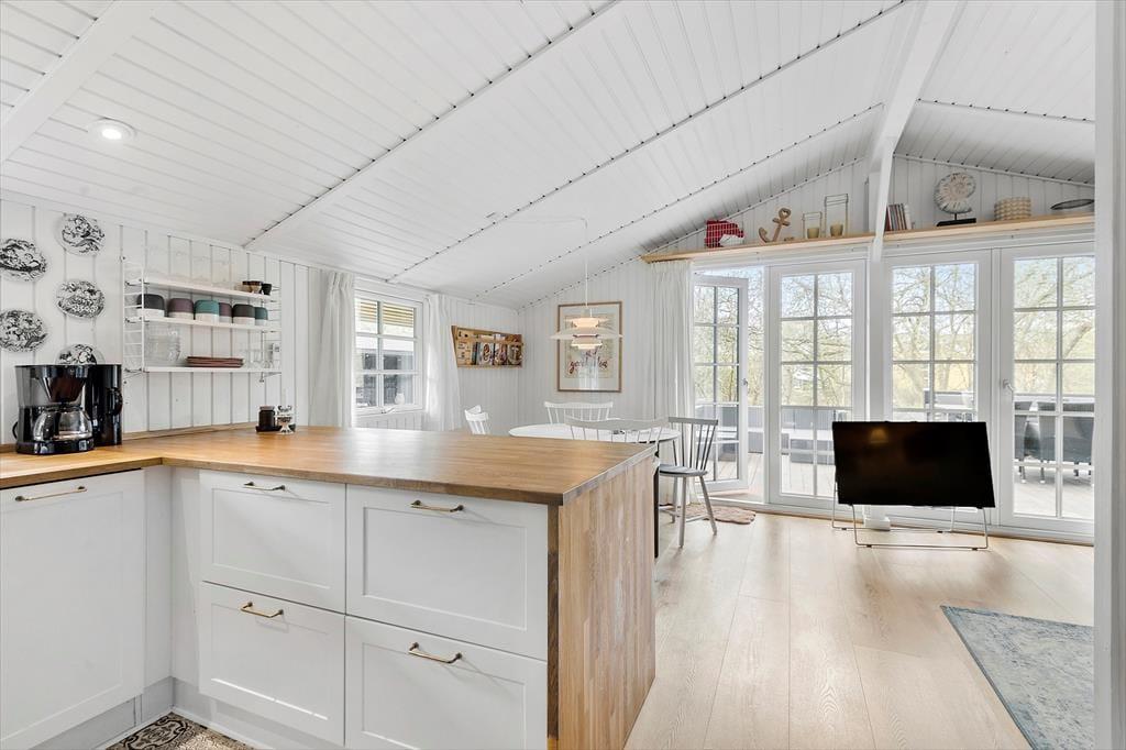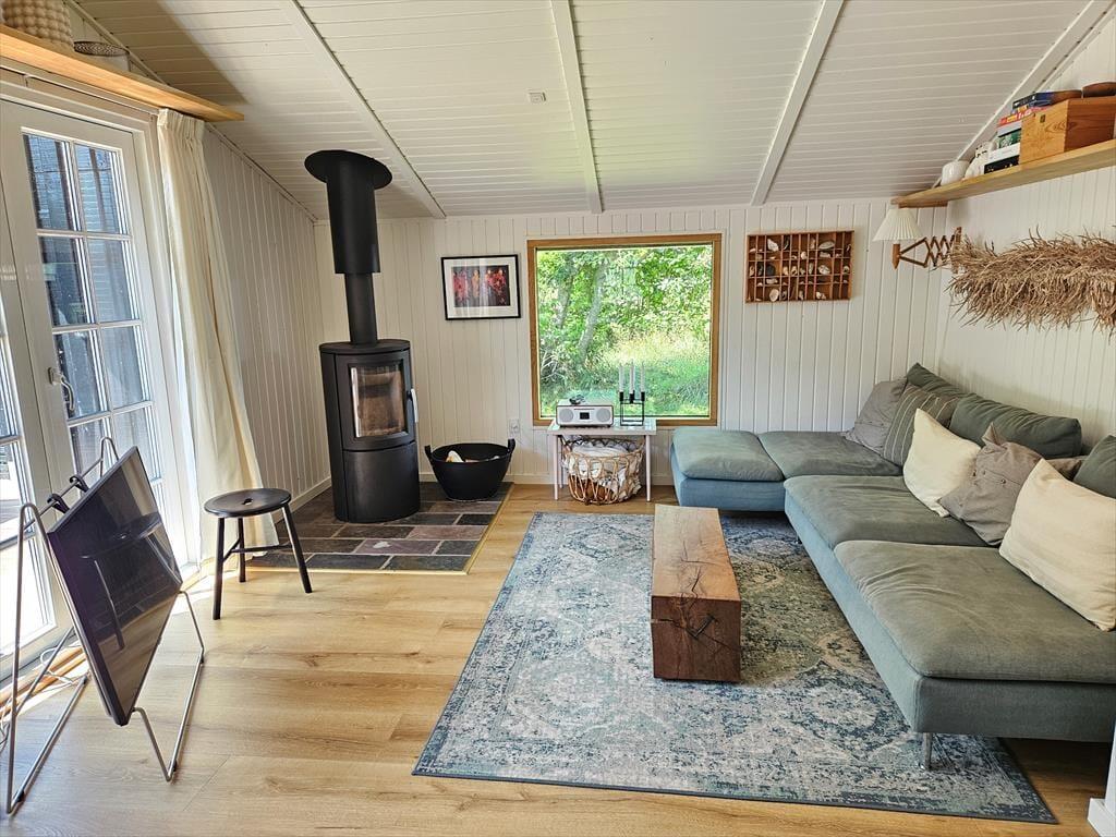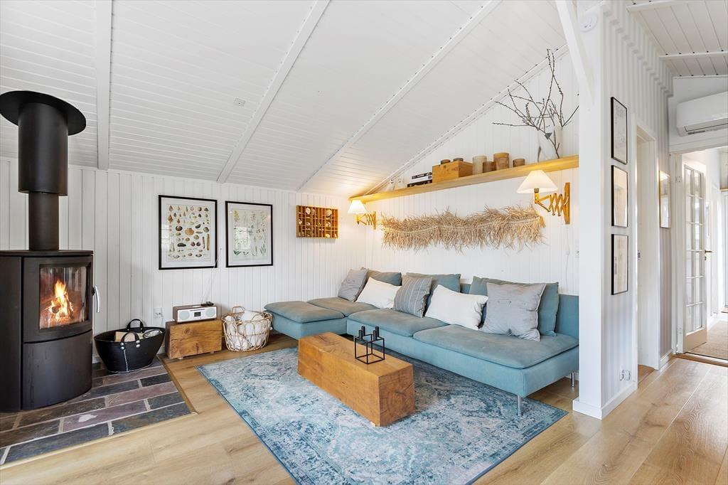 Das Ferienhaus wurde mit einer vernünftigen Raumaufteilung und einer wunderschönen Atmosphäre ausgestattet, als es 1980 erbaut wurde, und es wurde nach einer umfassenden Renovierung im Jahr 2020 noch einladender. Es gibt zwei Schlafzimmer, ein Duschbad und einen geräumigen Eingangsbereich, aber das Beste ist das Wohnzimmer, wo Wohnzimmer und Küche vereint sind. Hier kannst du in gemütlicher und funktioneller Umgebung kochen, und wenn du einfach nur entspannen möchtest, kannst du den Kamin anzünden und das schöne Sofa genießen. Der Esstisch ist ein guter Treffpunkt, und wenn die Sonne zu verlockend ist, kannst du die Gartentüren öffnen und die Mahlzeit auf der Terrasse genießen.