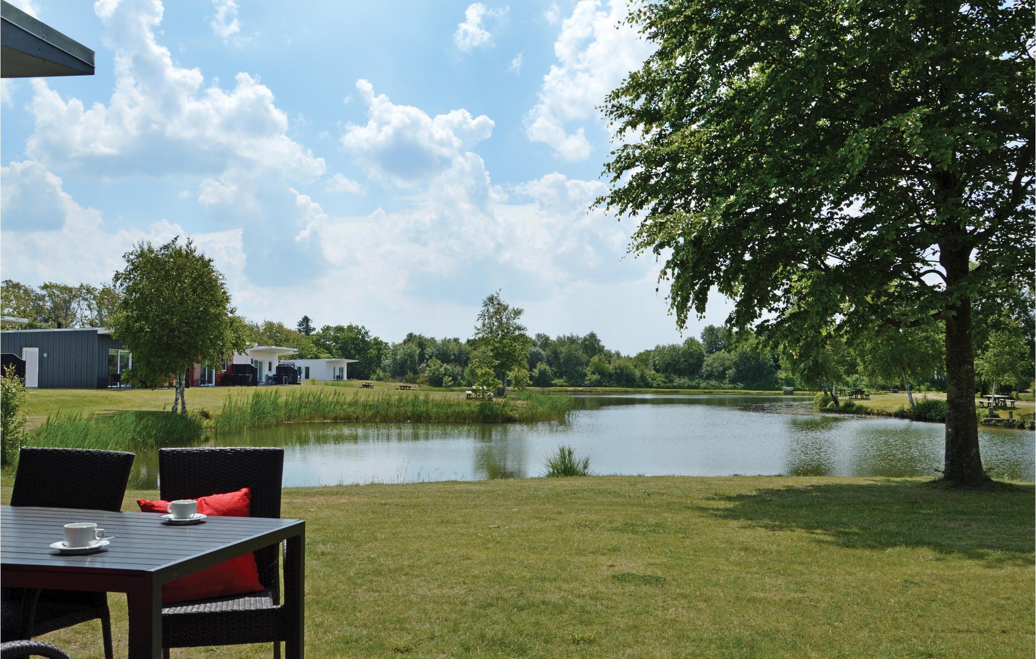 Dieses gemütliche Ferienhaus ist Teil einer Doppelhaushälfte im Naturpark Vest in Hee mit Blick auf den Fischteich, der sich direkt vor der Terrasse befindet.