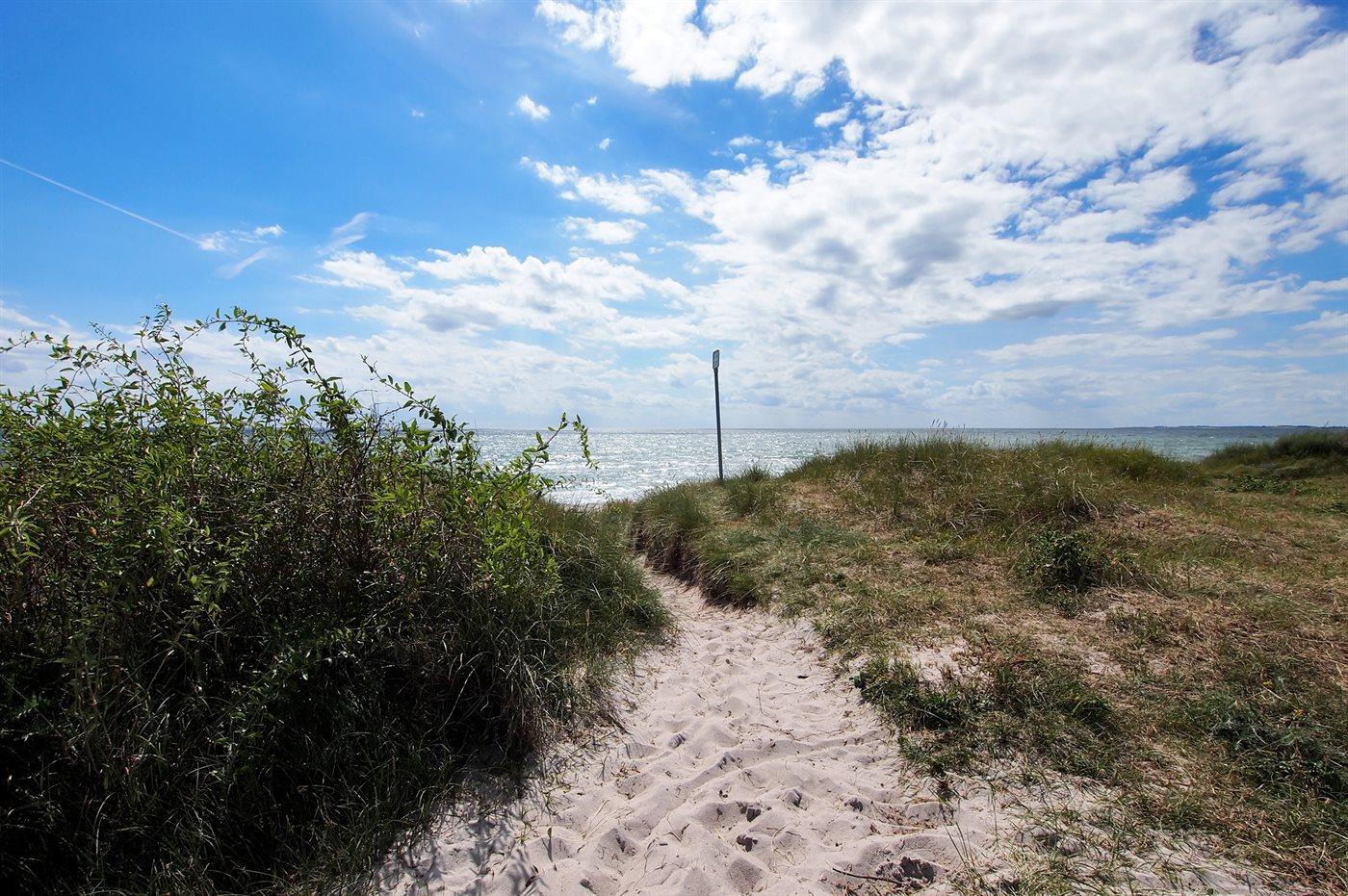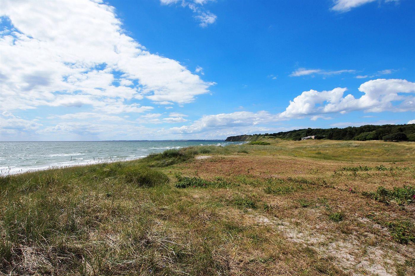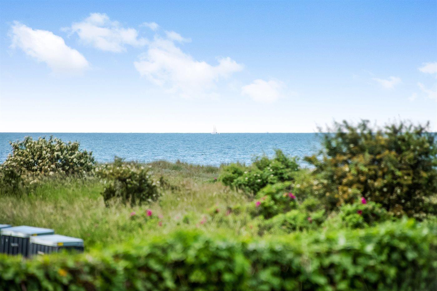 Ferienhaus mit Meerblick, großer Garten, Hobbyraum und kinderfreundlichem Strand nur 100 m entfernt in Humble, Dänemark.