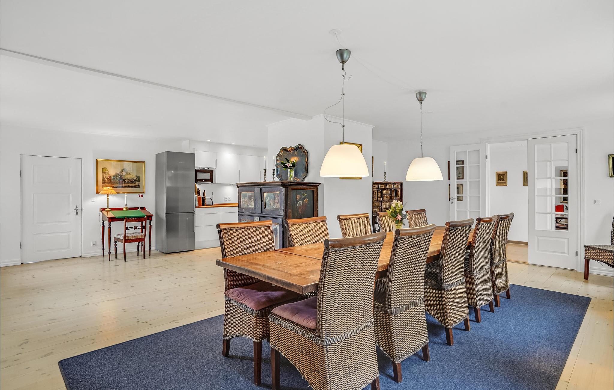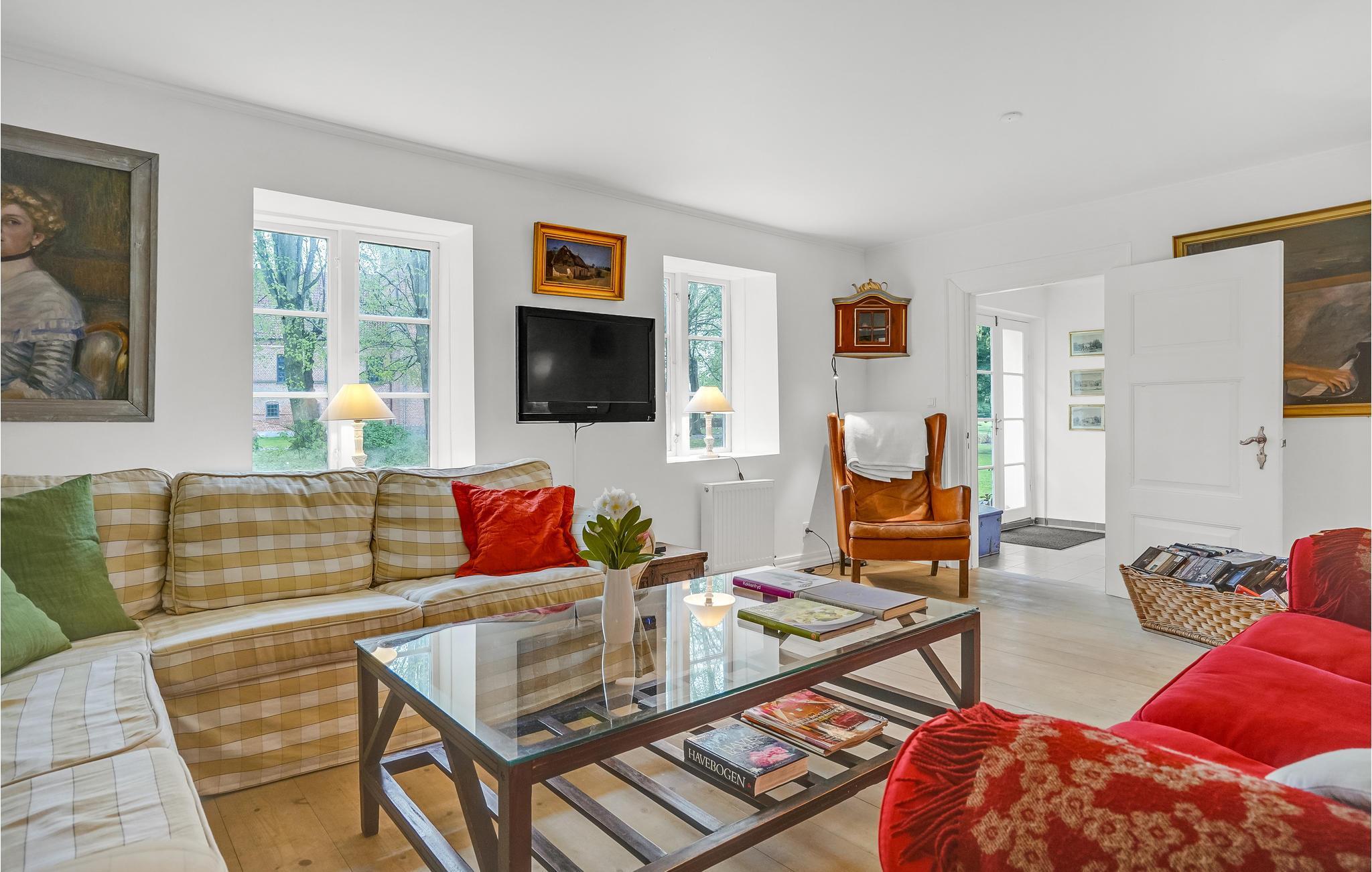Nur ein paar Schritte nördlich vom Schlosses Rosenholm liegt der 'Witwensitz', ein prächtiges, mondänes Ferienhaus. Es ist 2007 restauriert worden und besitzt heute ein helles und modernes Interieur. Vom Haus aus können Sie die Silhouette des Schlosses Rosenholm betrachten und einen fantastischen Sonnenuntergang über dem Schlossgraben genießen. In dieser herrlichen Stimmung fühlt man sich richtig in vergangene Zeiten versetzt. Zum Anwesen gehört auch ein separates Saunahaus, mit Whirlpool, Tischfussball und Darts. Zum Eigentum führt eine lange, schöne Lindenallee, die zum Schloss hinauf geht. Der schöne Schlosspark selbst ist wie im Märchen, hier finden Sie u. a. einen atemberaubenden Rosengarten mit dazugehörendem Springbrunnen. Der Park wird von einem großen Wald umgeben, der herrliche Spaziergänge einlädt. Schlossführungen sind möglich. Zum Haus gehört ein eigener Helikopterlandeplatz (EU-Zulassung), der sich auf dem angrenzenden Grundstück befindet.