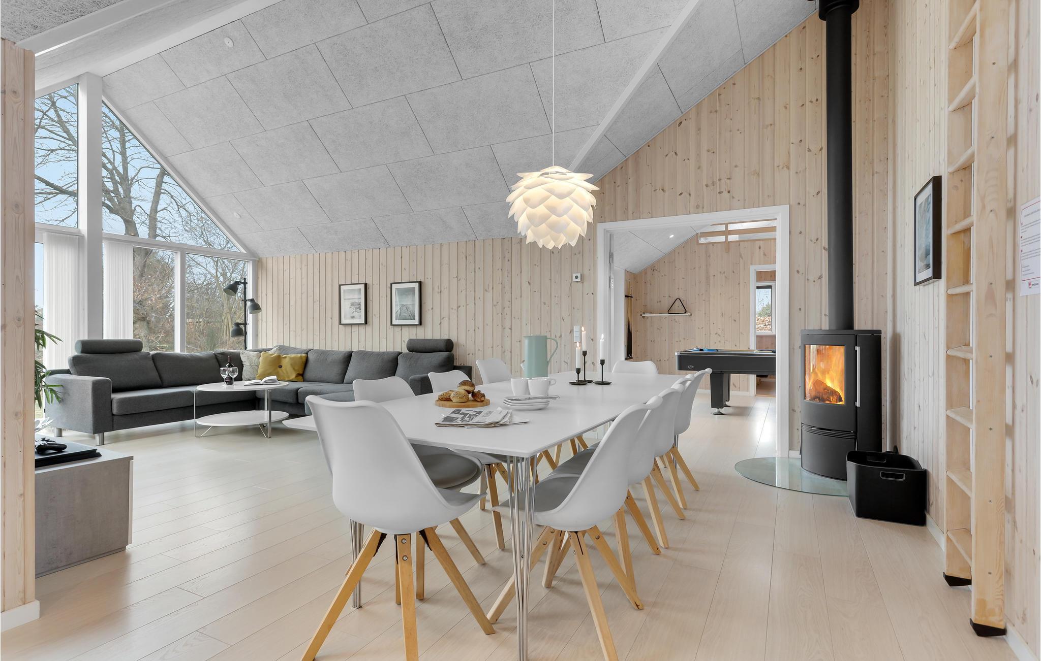 Es gibt vier gute Schlafzimmer und einen angenehmen Schlafboden für die größeren Kinder. Im Spielzimmr sind Tischtennis und Billard vorhanden. So können Sie zu jeder Jahreszeit einen schönen Urlaub erleben. Die große Küche ist zum Wohnzimmer offen, davor liegen dann gute Terrassen. Der Rude Strand ist der nächstgelegene Badestrand, an ihm sind Sie ungestört. Etwas lebhafter ist in der Nähe der Saksild Strand, der bei günstigen Windverhältnissen gerne von Kitesurfern besucht wird. Auch gibt es an ihm einen Eiskiosk, Restauran und Lebensmittelgeschäft. In Norsminde gibt es ein Gourmetrestaurant, den Norsminde Kro.