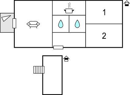 Badezimmer (nr. 2) - WC. Warmes und kaltes Wasser. Dusche