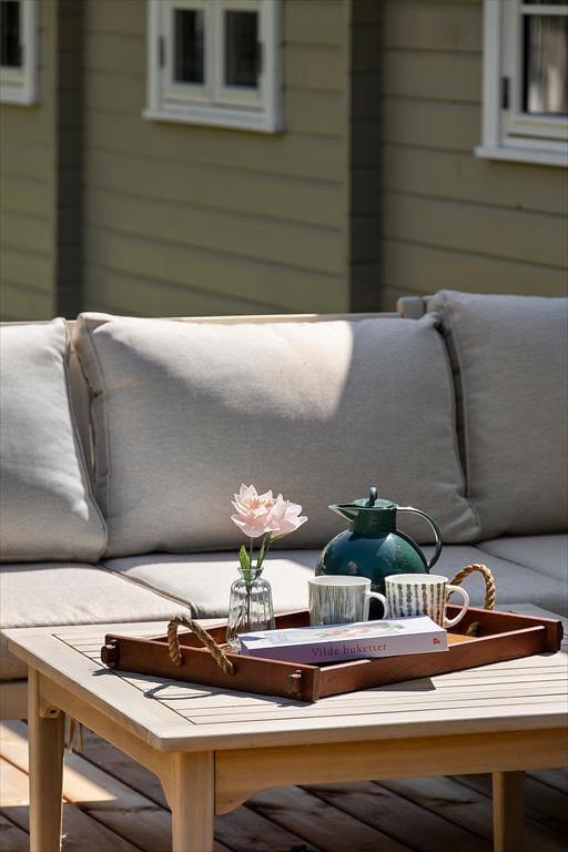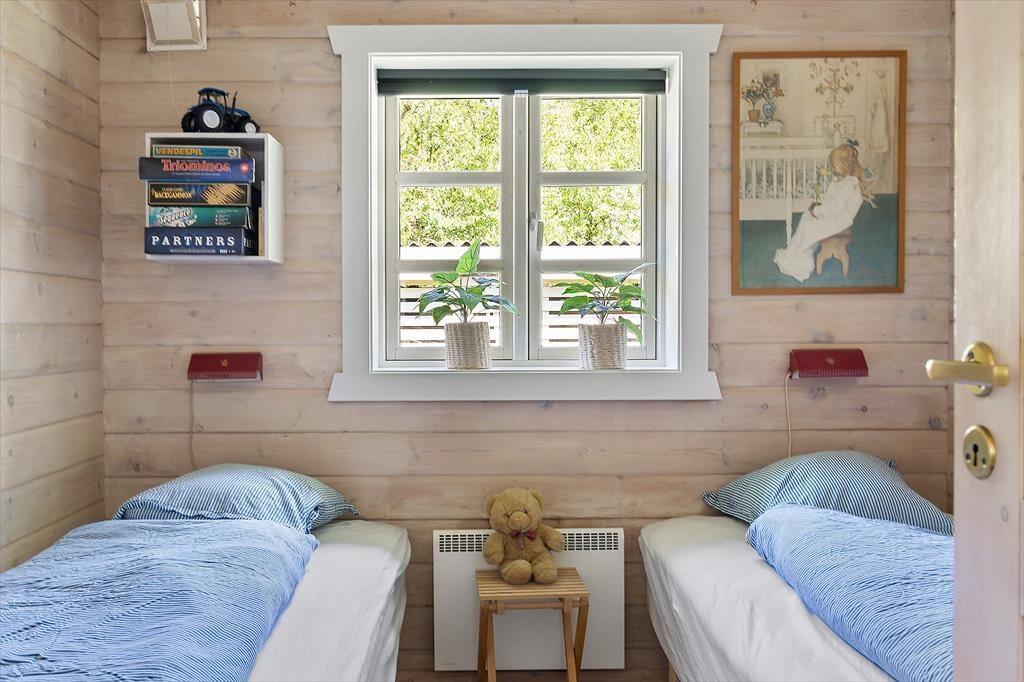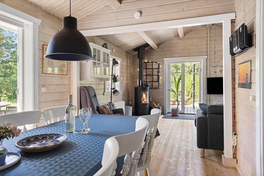 Das Ferienhaus steht hier seit 1992, wo es auf schöne und klassische Weise mit solider Holzfassade und weißen Sprossenfenstern errichtet wurde. Im Innen herrscht eine gute Atmosphäre. Es ist ein Ort, an dem du dich schnell zuhause fühlen und die Urlaubsstimmung wirklich erleben kannst, während du im offenen Küchenbereich mit dem Kochen beschäftigt bist, Brettspiele spielst und dich im Wohnzimmer entspannst oder in einem der drei Schlafzimmer lange schläfst. Alle Räume sind hell und einladend eingerichtet – auch das Badezimmer, das unter anderem mit einer Waschmaschine ausgestattet ist, sodass die Urlaubswäsche aufgefrischt werden kann, falls du nicht genug Shorts und Sommerkleider eingepackt hast.