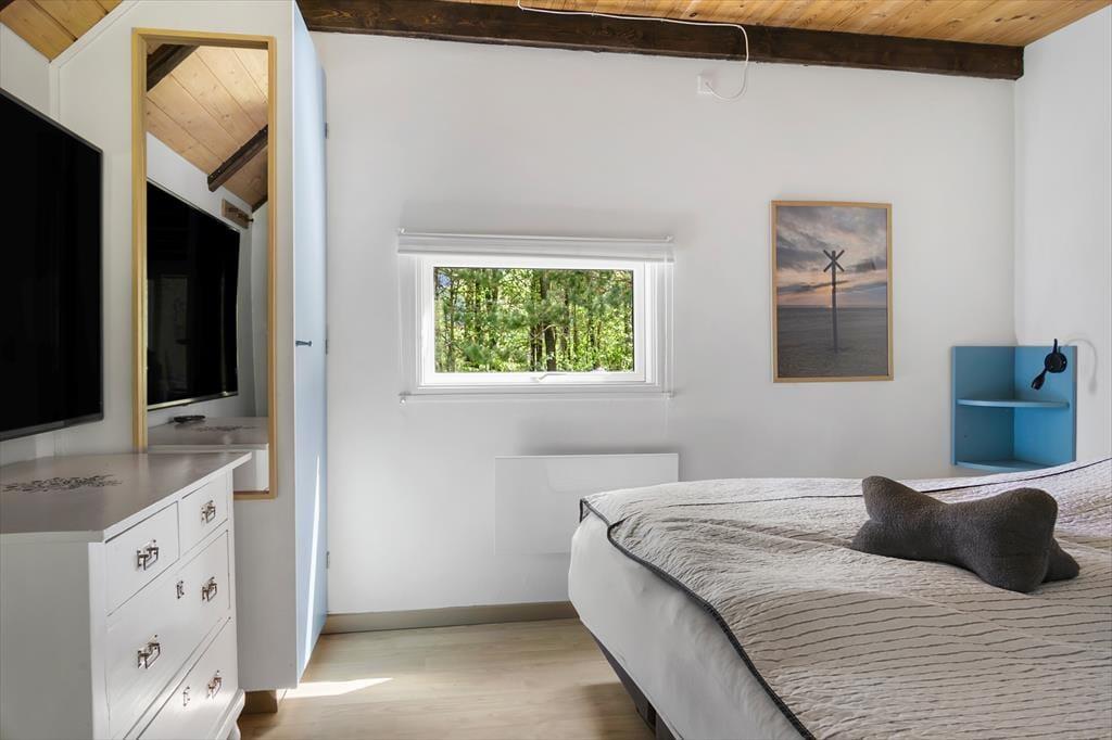 Das Ferienhaus liegt seit 1978 in der schönen Landschaft. Seit seiner Erbauung wurde es laufend liebevoll gepflegt und modernisiert. Im Hausinneren empfängt dich die unbezahlbar schöne, typisch dänische Ferienhausatmosphäre, die maßgeblich durch helle Holzwände, hohe Decken mit einer offenen, rustikalen Balkenlage, eine komfortable Möblierung und einen Gemütlichkeit schaffenden Kaminofen im Wohnraum geprägt wird. Eine Wärmepumpe verspricht ein angenehmes Wohnklima. Die offene Küchenabteilung stellt eine gute und funktionale Basis für die Zubereitung deiner Mahlzeiten dar. Für erholsame Momente voller Entspannung ist dank der in Verlängerung des Badezimmers gelegenen Sauna gesorgt. Falls die Wärme dich schläfrig gemacht hat, kannst du dich sehr schön für ein Nickerchen in eines der drei Schlafzimmer zurückziehen. Zwei der Schlafräume befinden sich im Obergeschoss dieses ansprechenden Ferienhauses.
