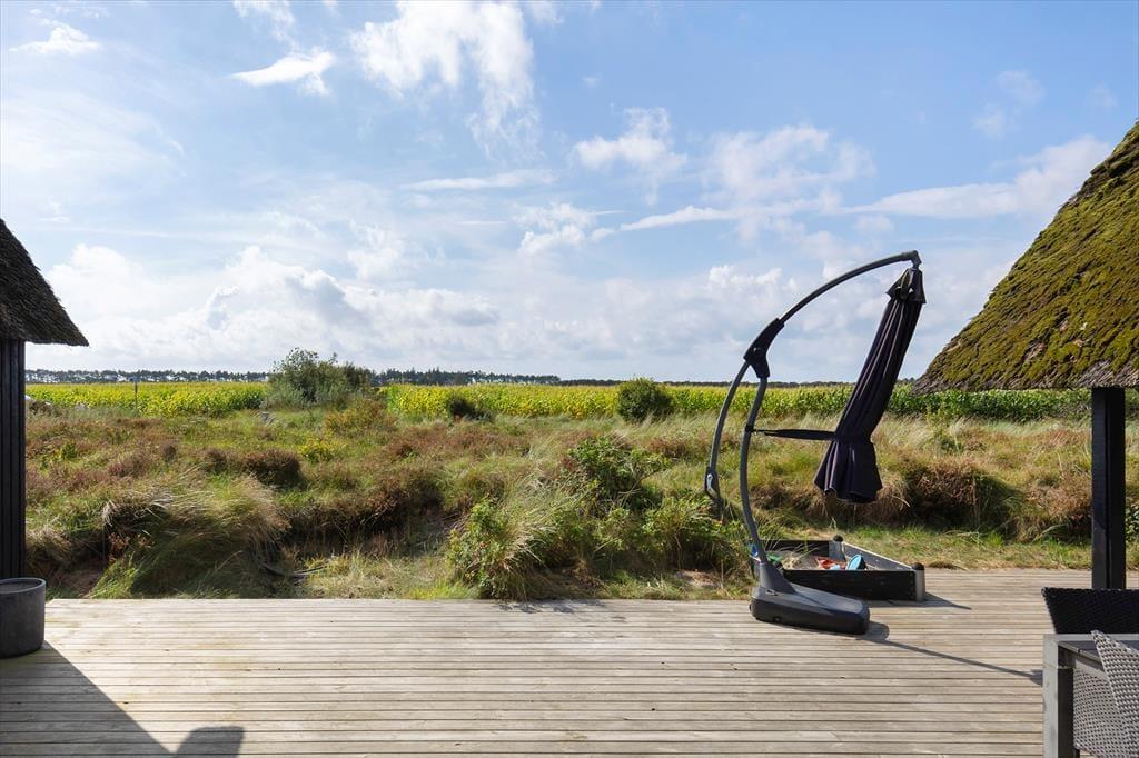Auf der großen, teilweise überdachten Terrasse kannst du dich zurücklehnen und den weiten Blick über die offenen Felder in Richtung Sønderstrand genießen. An stillen Tagen hörst du sogar das Rauschen der Meereswellen – ein natürlicher Klang, der deine Ferientage besonders macht. Hier ist reichlich Platz für gemeinsame Mahlzeiten unter freiem Himmel oder ruhige Sonnenmomente. Vom Haus aus bist du schnell in der Vråby Plantage, wo sich lange Spaziergänge auf verschlungenen Pfaden anbieten. Wenn du deinen Hund mitbringst, wird er den eingezäunten Hundewald lieben, in dem er frei und ohne Leine laufen und spielen kann.