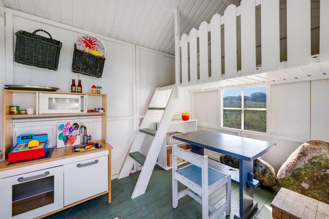 Die Ferienunterkunft liegt auf einem 1392 m² großen Naturgrundstück. Die Entfernung zum Meer beträgt 950 m. Die Entfernung zum Fjord beträgt 1200 m. Die nächste Einkaufsmöglichkeit liegt 1400 m entfernt. In einem Abstand von 2500 m gibt es einen Golfplatz. Es steht ein offenes Terrassenareal zur Verfügung. Außerdem gibt es überdachte Terrasse. Geräteraum. Kinderspielhaus. Parkplatz auf dem Grundstück.