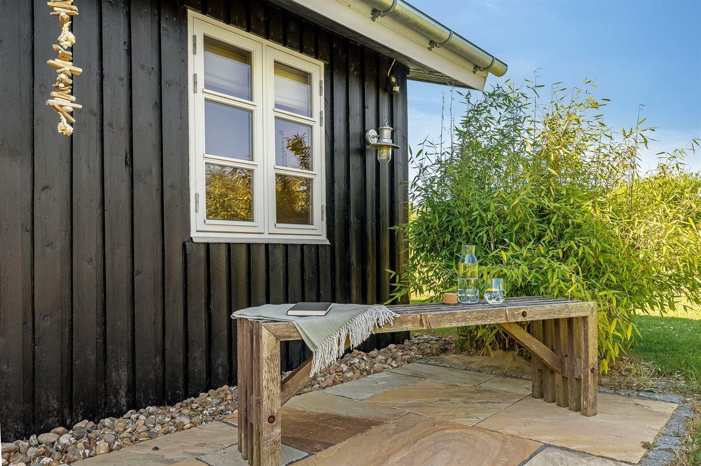 Die Ferienunterkunft liegt auf einem 2144 m² großen Naturgrundstück. Die Entfernung zum Meer beträgt 2500 m. Die Entfernung zum Fjord beträgt 1000 m. Die nächste Einkaufsmöglichkeit liegt 3000 m entfernt. In einem Abstand von 1600 m gibt es einen Golfplatz. Es steht ein zum Teil überdachtes und geschlossenes Terrassenareal zur Verfügung. Die Entfernung zu einem Spielplatz beträgt 500 m.Lagerfeuerstelle. Parkplatz auf dem Grundstück.
