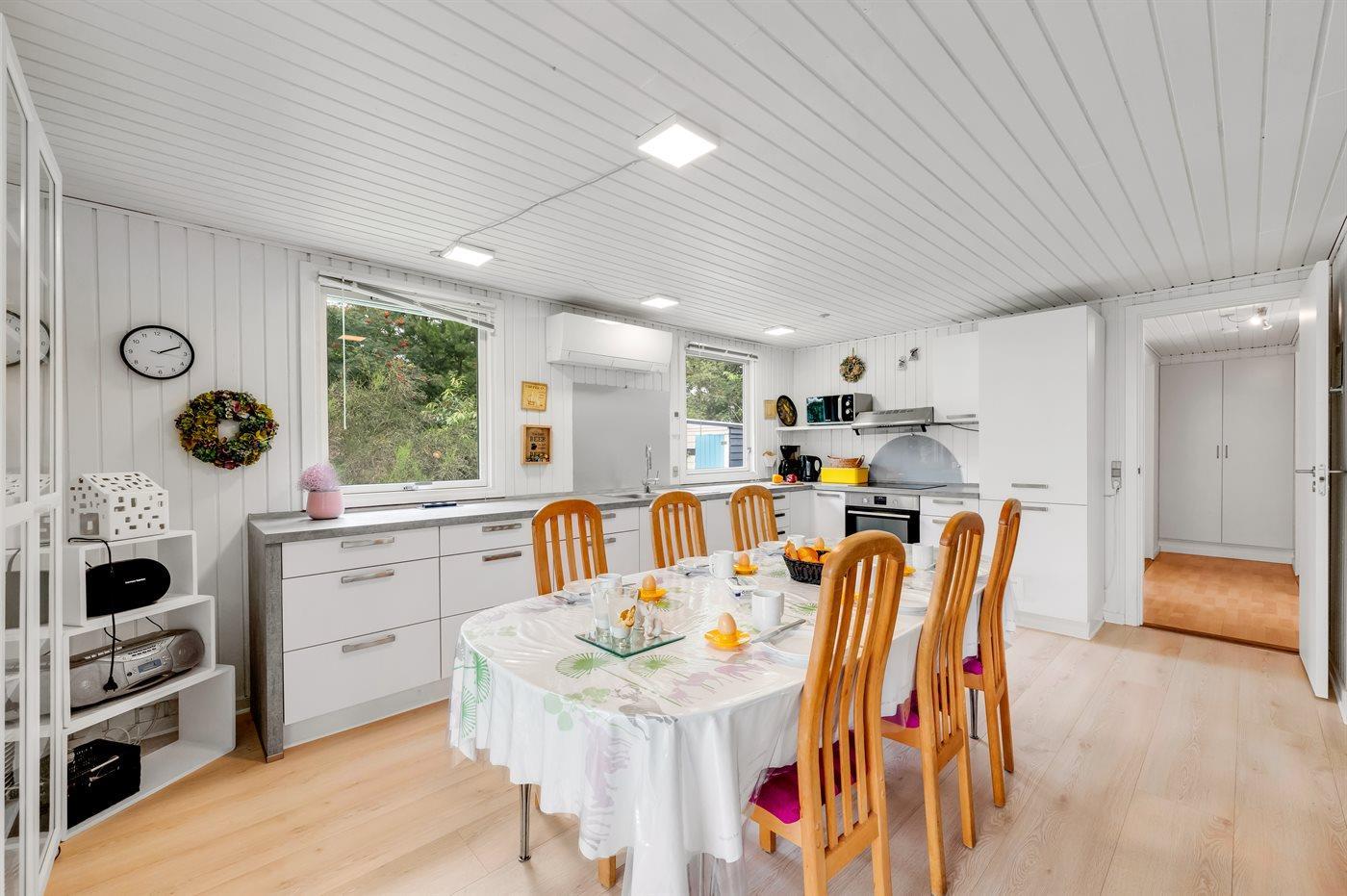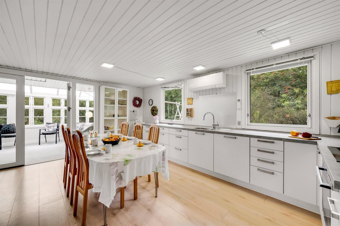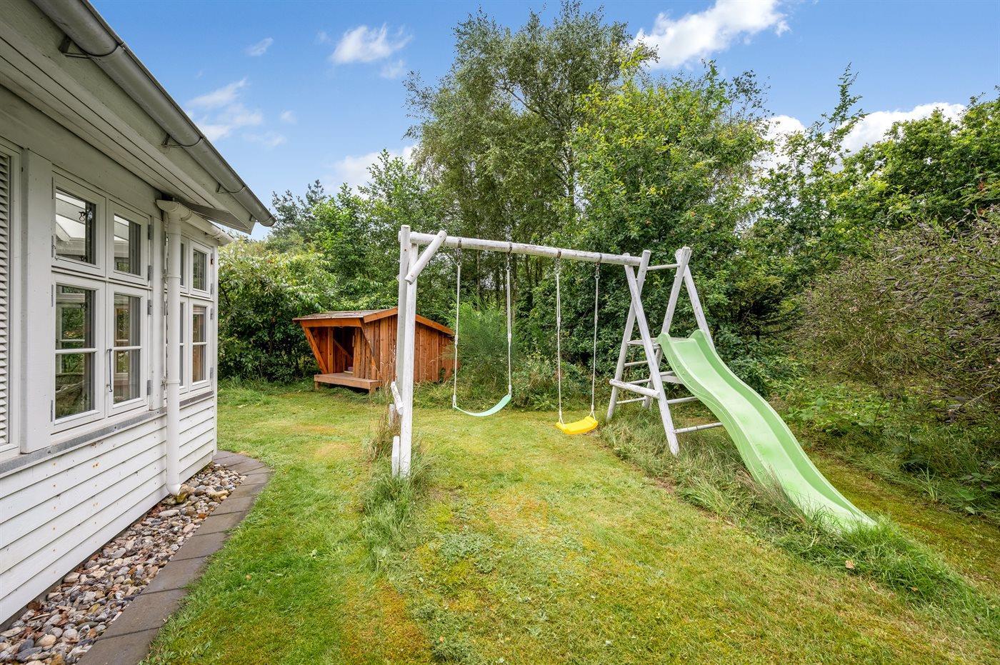 Die Ferienunterkunft liegt auf einem 2009 m² großen Naturgrundstück. Die Entfernung zum Meer beträgt 2500 m. Die Entfernung zum Fjord beträgt 600 m. Die nächste Einkaufsmöglichkeit liegt 3000 m entfernt. In einem Abstand von 2000 m gibt es einen Golfplatz. Es steht ein geschlossenes Terrassenareal zur Verfügung.Balkon im Obergeschoss. Zutritt zu einem Wintergarten. Schaukel. Sandkasten. Kinderspielhaus. Trampolin. Rutsche. Fußballtor. Die Entfernung zu einem Spielplatz beträgt 500 m. Windschutzhütte. Parkplatz auf dem Grundstück.