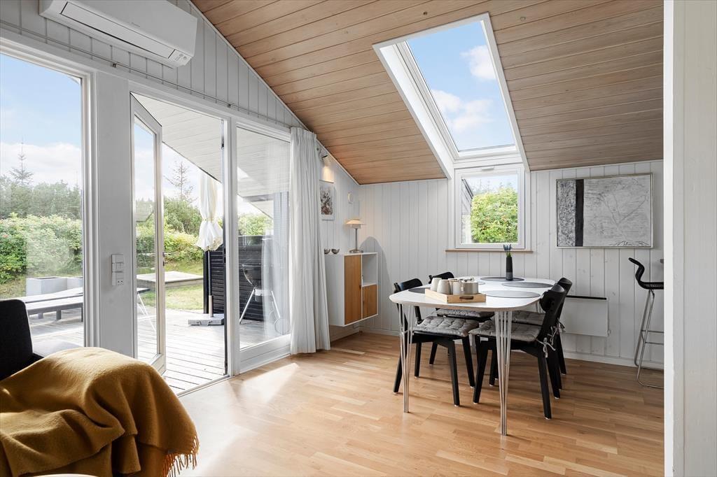 Schon im Eingang empfängt euch ein helles und freundliches Ferienhaus, in dem die großen Fensterpartien viel Tageslicht hereinlassen und einen schönen Blick in die Natur bieten. Wohnraum, Essbereich und Küche gehen harmonisch ineinander über. Zusammen zu seien ist leicht gemacht – egal, ob ihr Mahlzeiten zubereitet oder einfach entspannen möchtet.