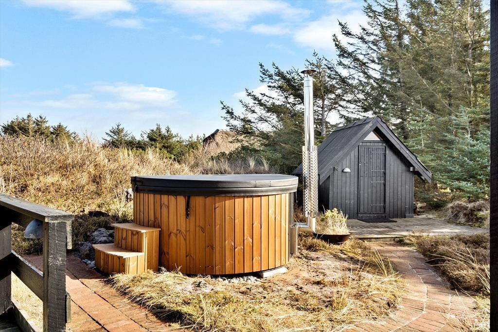 Das Sommerhaus liegt völlig ungestört am Ende einer gesperrten Straße und ist somit der perfekte Ort, um neue Kraft zu tanken und völlige Freiheit zu genießen. Wenn Sie auf einen Spaziergang Lust haben, sind es nur wenige hundert Meter bis zum Strand von Søndervig und der Nordsee. Wenn Sie Fahrräder mitgebracht oder gemietet haben, können Sie sich auf die Erkundung der kleinen Straßen und Radwege auf dem gesamten Holmsland Klit freuen. Auch Surfen gehört zu den beliebten Aktivitäten in unserer Gegeng, und wenn das Wetter zu Indoor-Spaß einlädt, gibt es in Søndervig einen großen Wasserpark.