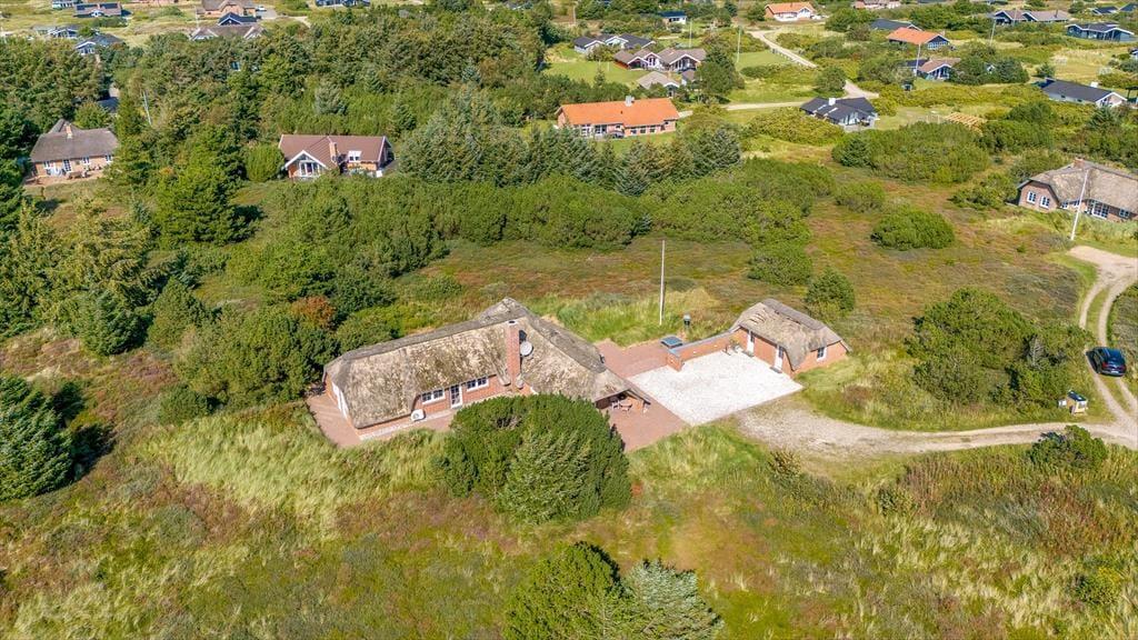 Ein großes Naturgrundstück, ein Aktivitätsraum mit Billardtisch und ein Wellnessbad mit Spa und Sauna – das sind nur einige der Dinge, die das Urlaubsleben in diesem gemütlichen, reetgedeckten Ferienhaus versüßen. Das Haus liegt wunderschön am Frans Julius Vej, in der Lücke zwischen Klegod und Søndervig.