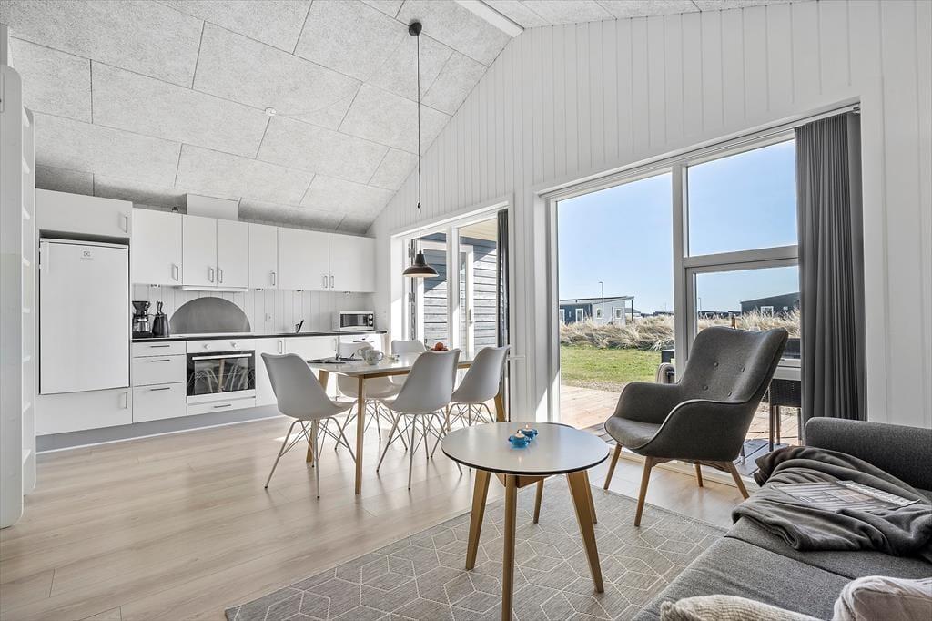 Tritt ein in dieses helle und moderne Ferienhaus und schon hast du den perfekten Rahmen für entspannte Urlaubstage. Die offene Raumgestaltung schafft eine einladende Atmosphäre, in der Beisammensein im Mittelpunkt steht. Das Herzstück des Ferienhauses ist das geräumige Wohnzimmer, in dem große Panoramafenster Licht und Natur hereinlassen. Mach es dir mit einem guten Buch auf dem Sofa gemütlich und an kühleren Tagen ist es schön, die wohlige Wärme des Raumes mit eine leckere Tasse Tee zu genießt. Nach einem Tag am Strand kannst du in der gut ausgestatteten Küche ein wohlverdientes Abendessen zubereiten und gemeinsam am Esstisch können lange Gespräche geführt oder Brettspiele gespielt werden. Die angenehmen Betten in den einladenden Schlafzimmern sorgen für eine erholsame Nachtruhe, sodass du ausgeruht und bereit für neue Urlaubserlebnisse erwachst. Für das weitere Wohlbefinden lädt das Badezimmer zu einer erfrischenden Dusche ein. Ebenso können Sand und Salz abspült werden und dein Körper sich völlig unter warmem Wasser entspannen.