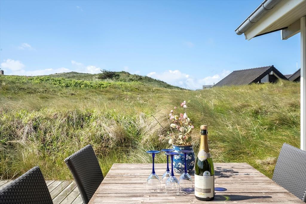Die große Holzterrasse ist ohne Zweifel eines der Hotspots des Hauses. Diese zieht sich lang um das Gebäude und bietet die unterschiedlichsten Ecken zu allen Gelegenheiten. Ob für den Frühstückstisch in der Morgensonne, Lesepausen im Schatten oder für die Zubereitung von leckeren Grillgerichten am Abend – du wirst immer deinen Lieblingsplatz finden. Die Terrasse ist gut abgeschirmt – du entspannst dich ungestört und die Kinder können unbekümmert rund um das Haus spielen und die interessante Natur des Grundstücks entdecken. Und für Frühaufsteher ist es herrlich den Tag mit einem erfrischenden Bad in der Nordsee zu beginnen, denn du bist in nur wenigen Metern über die Dünen am Strand.