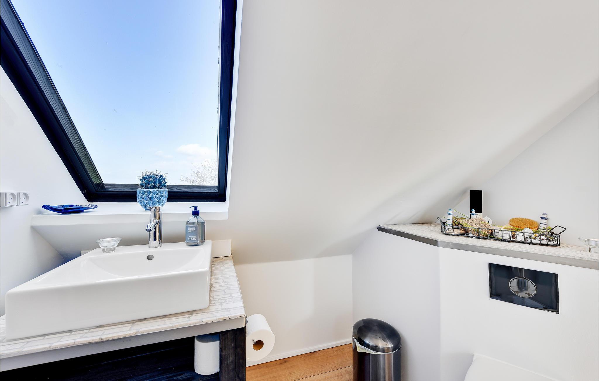 Die Wohnung ist mit 2 Schlafzimmern ausgestattet, Wohnzimmer in offener Verbindung mit Küchenzeile, die einen Mini-Ofen, Waschbecken und 1 Kochfeld hat. Darüber hinaus gibt es ein Badezimmer mit Dusche. Vom Wohnzimmer und der Küche hat man einen fantastischen Blick über die Felder zum Ringkøbing-Fjord und zum Surferparadies am Bagger-Damm. Die Wohnung befindet sich im 1. Stock und ist daher nicht für Menschen mit Gehbehinderung geeignet.