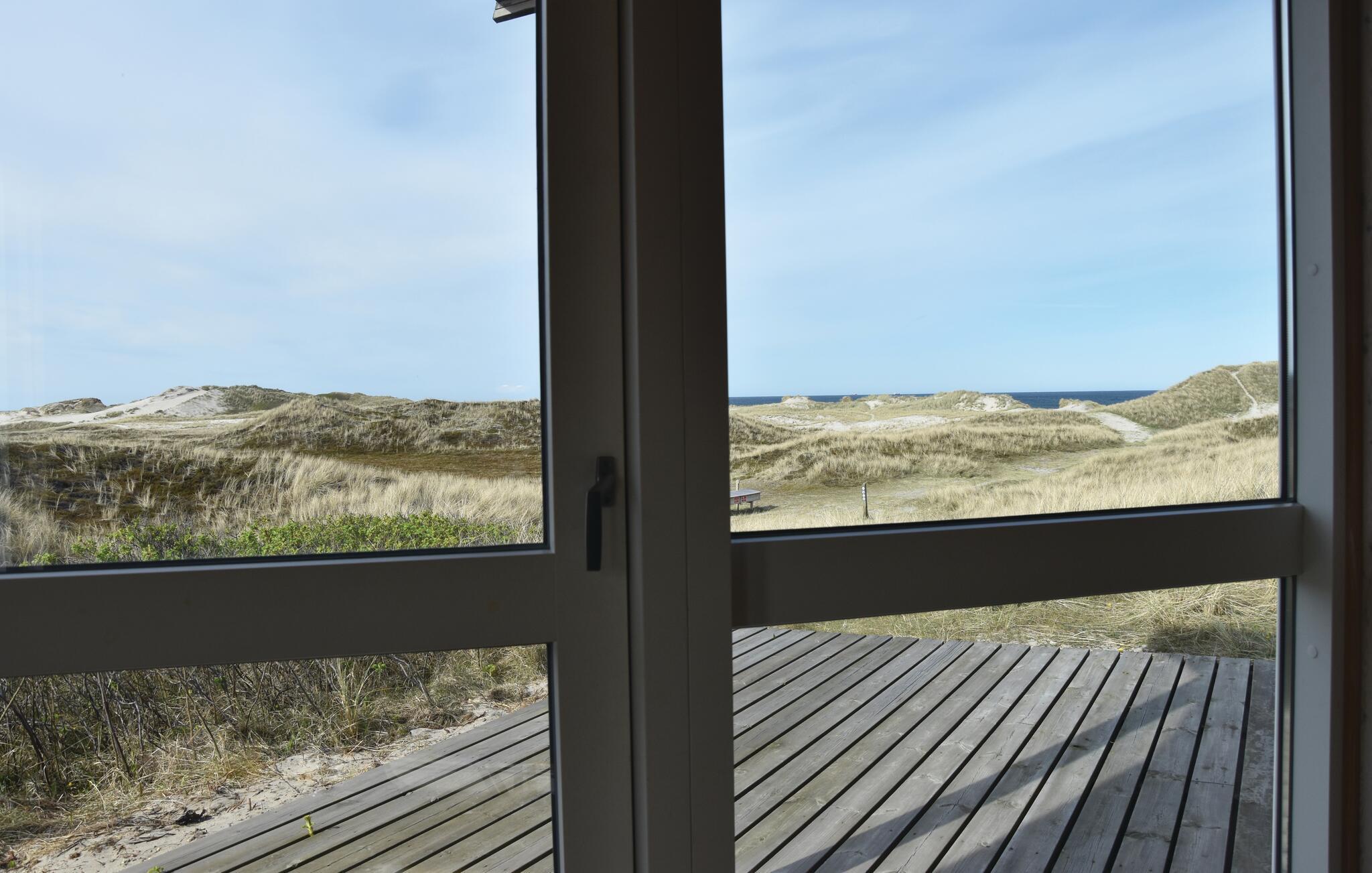 Einzigartige Panoramaaussicht und damit ein perfekt gewähltes Ferienhaus! Genießen Sie die schöne Aussicht von dieser bildschönen Umgebung. Das Haus liegt als letztes einer Gruppe vor der Nordsee und nur ein paar Minuten zu Fuß von der Küste. Die Einrichtung ist behaglich. Es sind zwei Schlafzimmer, ein schönes Badezimmer und ein Wohn-, Küchenraum mit Aussicht auf die Dünen und das Meer vorhanden. Beim Essen und vom der Sofagruppe sowie von der Terrasse bietet sich Ihnen diese Aussicht. In nur 3,5 km Entfernung winkt Søndervig mit guten Restaurants und sportlichen Angeboten. Es gibt ein gutes Netz an Fußwegen dorthin, Sie werden von Verkehr nicht gestört. Bei einem Ausflug nach Ringkøbing erleben Sie beschauliche Gassen im Kopfsteinpflaster. Auch Hvide Sande lockt mit einem Flair einer Fischerstadt und einer Fischauktion im Hafen. An der Nordseeküste fühlt sich jede Altersgruppe wohl.