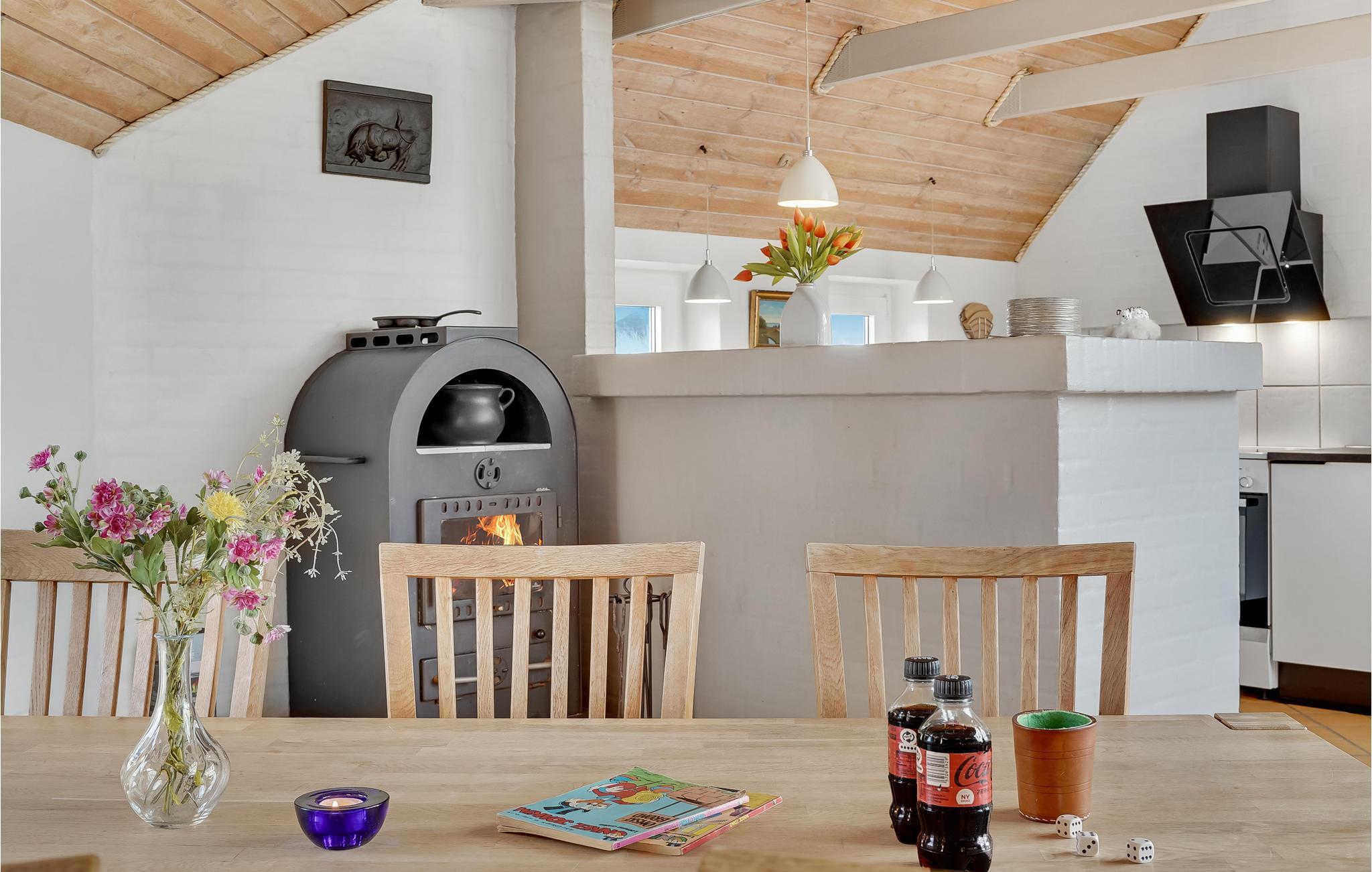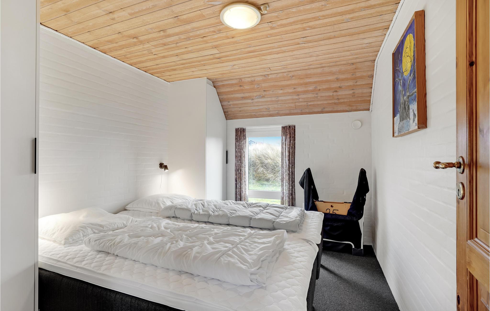 In dem wunderschönen Naturgebiet, ganz in der Nähe vom beliebten Badeort Søndervig, befindet sich dieses große Ferienhaus mit Swimmingpool. Das Haus ist gut ausgestattet und eignet sich für eine größere Familie, 2 Familien oder vielleicht mehrere Freunde, die gemeinsam Urlaub machen möchten. Im Zentrum des Hauses liegt die geräumige Wohnküche, die mit dem Wohnbereich verbunden ist und wo ein Kaminofen für Gemütlichkeit sorgt. Der Wohnraum hat einen offenen Dachfirst und durch den großen Fensterbereich kommt tagsüber vielt Licht in den Raum. Vom Wohnzimmer haben Sie Zugang zum Wellnessbereich des Hauses, der mit einem großen Swimmingpool (30 m²) mit Rutsche, Whirlpool und Sauna aufwartet. Beim Poolbereich liegt das eine der insgesamt 2 Badezimmer. Im gegenüberliegenden Ende des Hauses befindet sich das andere Bad und der Schlafbereich mit 4 Schlafzimmern und 2 Zwischenböden mit jeweils 3 Matratzen. Von der Terrasse aus haben Sie Blick auf den großen Garten mit Schaukel und Sandkasten und auf die schöne Moorlandschaft rund um das Haus.