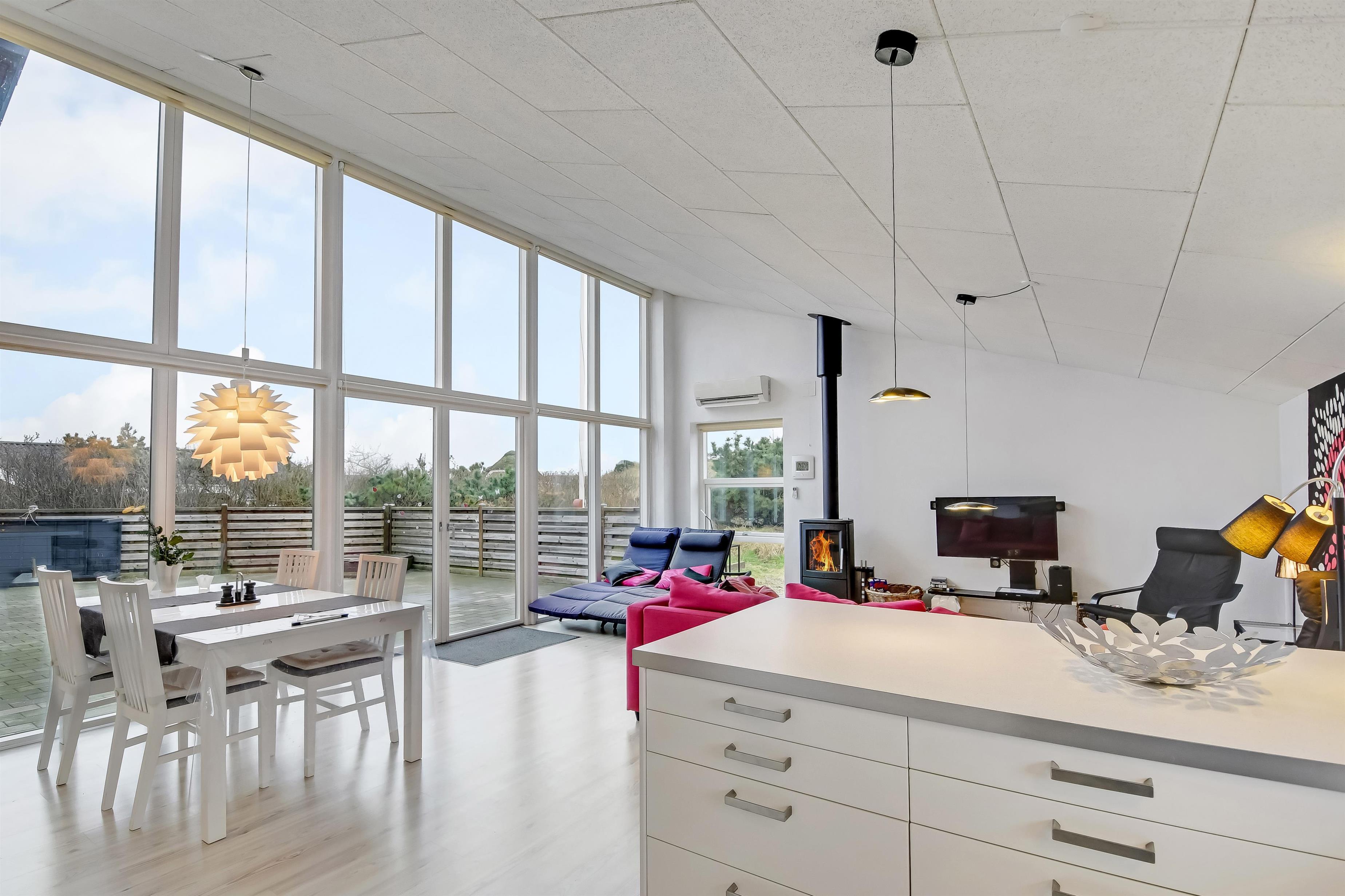 Bunt, jung, modern und lichtdurchflutet – so präsentiert sich dieses schöne Ferienhaus mit einem extra Arbeitsplatz und einem Schlafboden (auf dänisch Hems genannt), den eure Kinder lieben werden. Hier wohnt ihr auf einem gut 1.500 qm großen Grundstück, mit einer Wohnfläche von 120 qm ganz in der Nähe vom quirligen Urlaubsort Søndervig, mit seinem schönen Strand und den vielen Möglichkeiten aktiv zu sein.