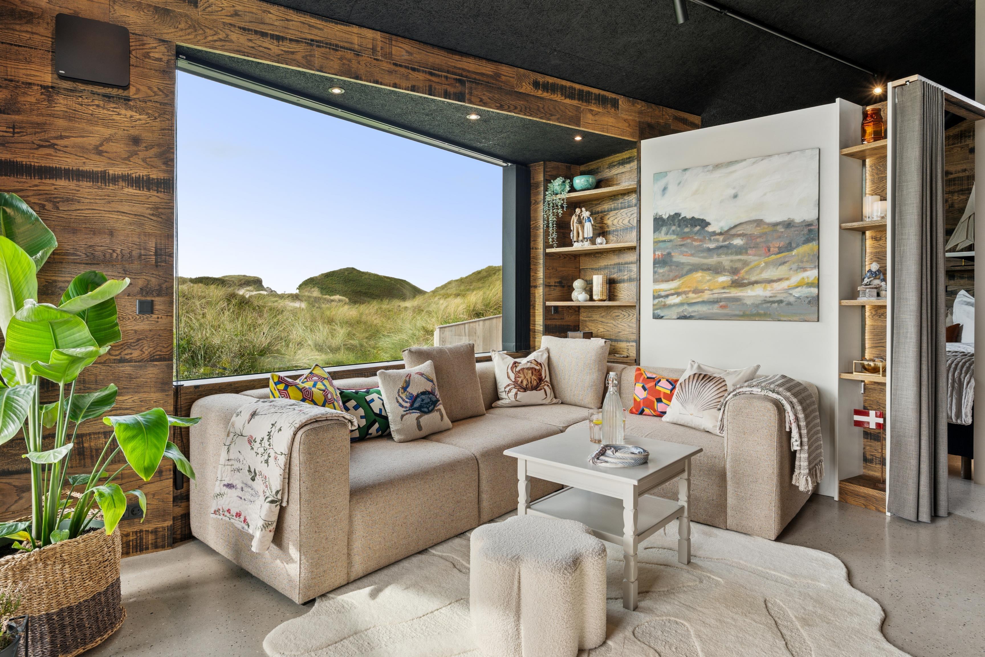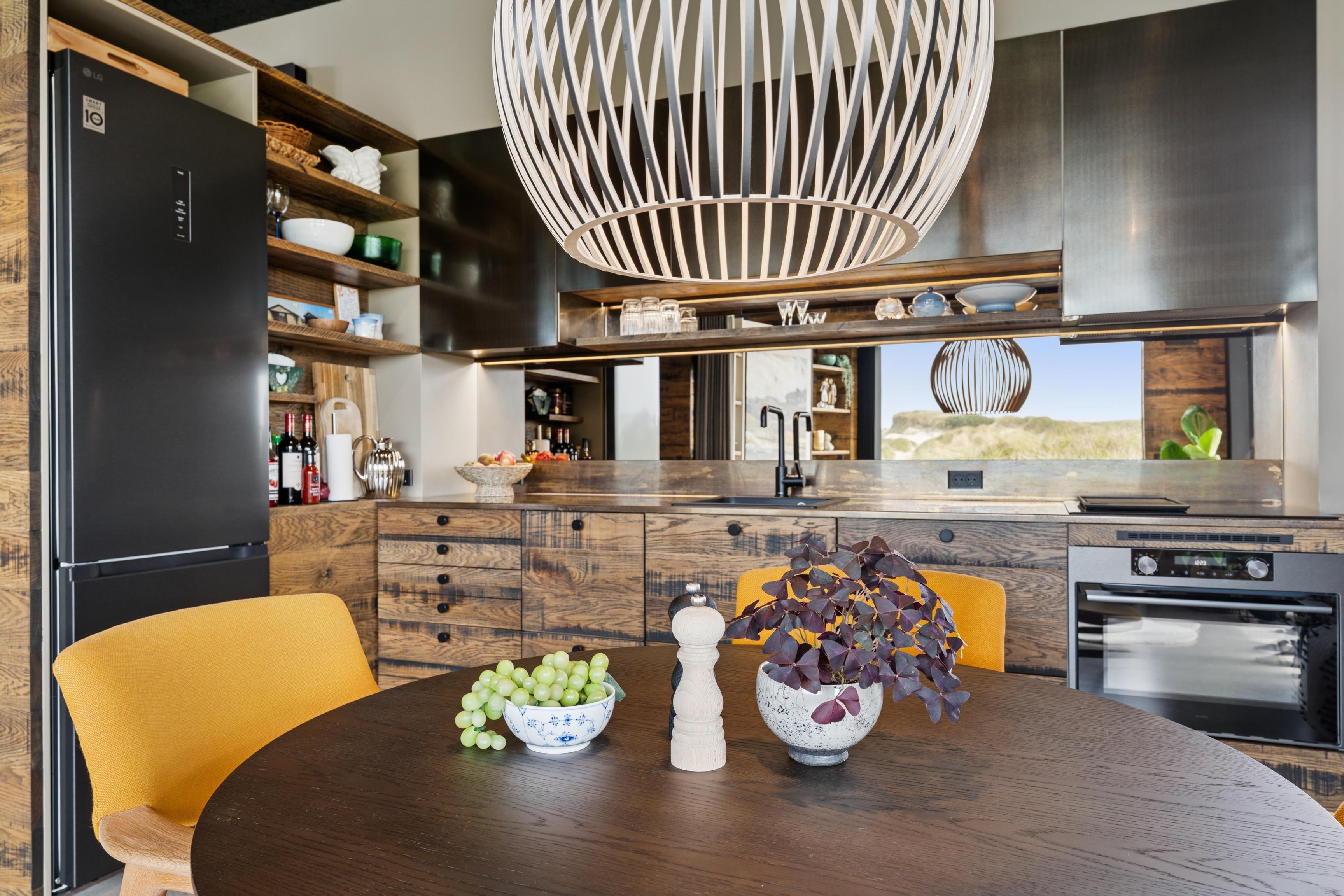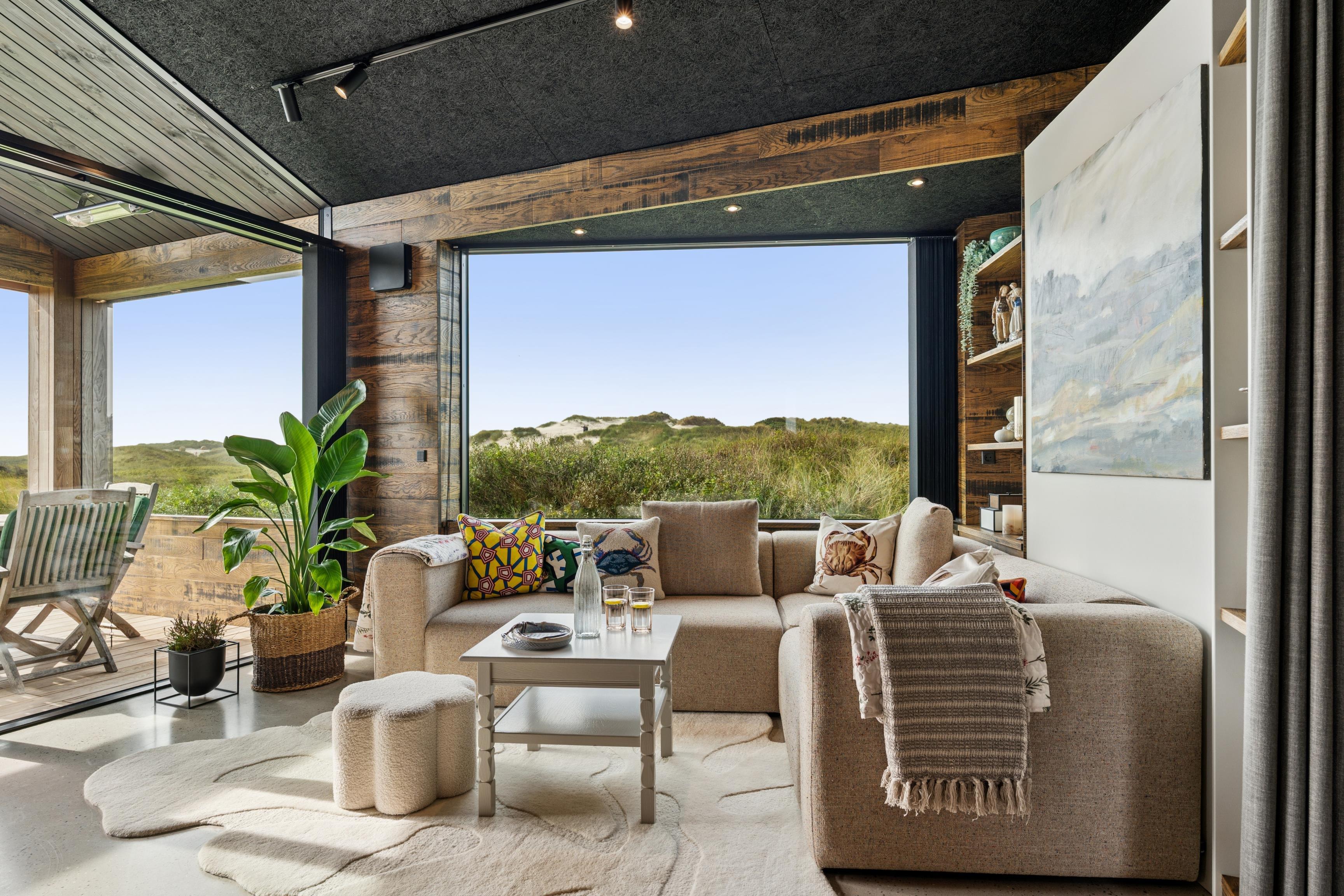 Draußen erwarten Sie mehrere Terrassen. Es gibt hochwertige Gartenmöbel, eine herrliche Außendusche und einen Gasgrill. Der überdachte Bereich bietet Schutz vor dem Wind und ist mit Terrassenheizern ausgestattet, sodass Sie das Leben im Freien von früh morgens bis spät abends genießen können. Machen Sie es sich auf den Liegestühlen bequem, umgeben von Dünen und Dünengras, die sowohl Windschutz als auch Privatsphäre bieten – während im Hintergrund stets das Rauschen des Meeres zu hören ist.
