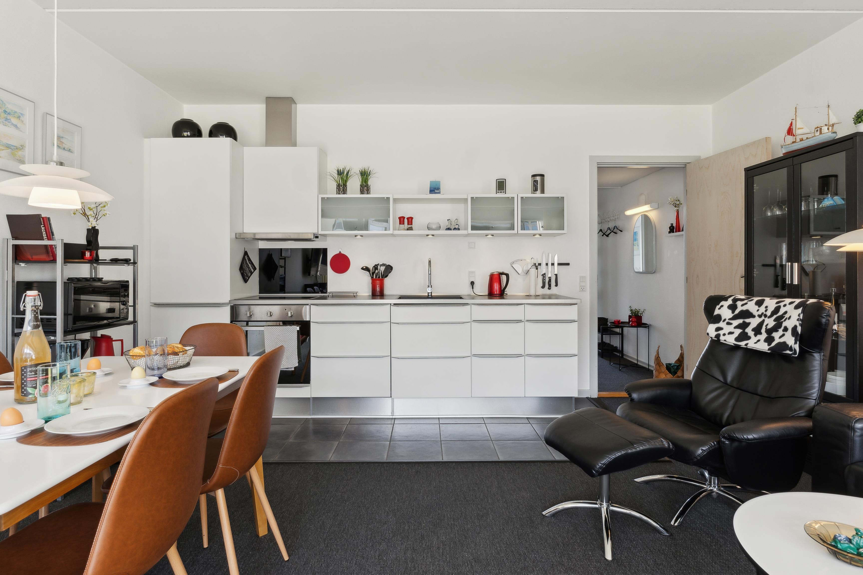 Die Wohnung ist 50 m² groß und das Wohnzimmer das Herzstück für euren Aufenthalt. Küche, Wohnzimmer und Essbereich sind kombiniert, sodass ihr viele Möglichkeiten habt, gemeinsam Zeit zu verbringen – egal ob beim Kochen, Spielen oder einfach beim Entspannen. Die Küche ist gut ausgestattet und wenn ihr mit dem Essen fertig seid, lehnt ihr euch entspannt zurück, denn die Spülmaschine übernimmt den Rest für euch.