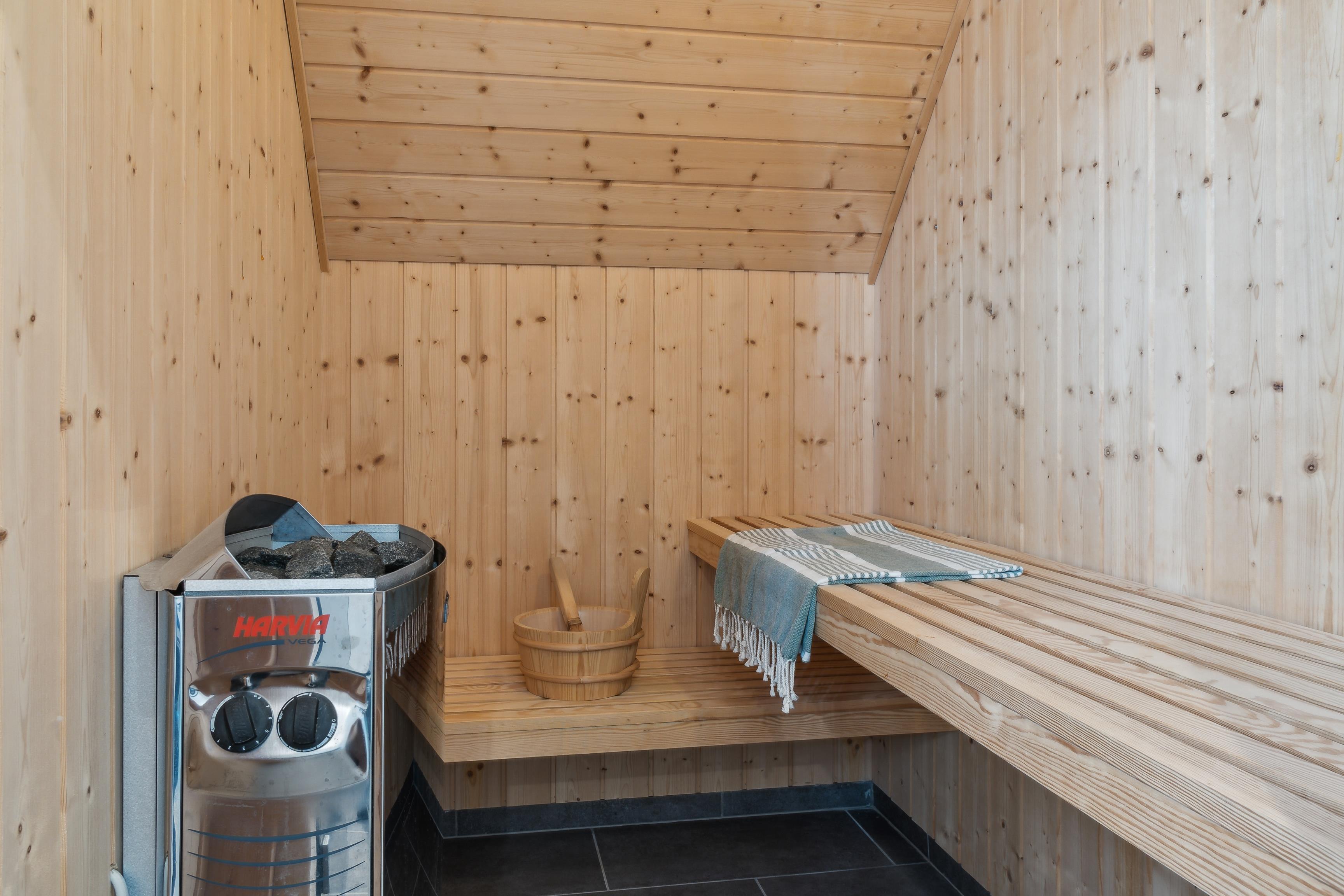 Es wurde mit hochwertigen Materialien gebaut und verfügt über eine durchdachte Raumaufteilung mit hohen Decken. Das Haus verfügt über drei helle und geräumige Schlafzimmer – alle mit Doppelbetten. Küche, Essbereich und Wohnzimmer sind in einem großen, offenen Raum vereint, der das Herzstück des Hauses bildet. Hier könnt ihr gemeinsame Zeit genießen, während der Kamin neben der Wärmepumpe an kühleren Tagen für Wärme und Gemütlichkeit sorgt. Natürlich stehen auch ein großer Flachbildfernseher und WLAN zur Verfügung. In beiden Badezimmern gibt es Fußbodenheizung und eine Dusche, das stilvolle Badezimmer im Nebenhaus ist zusätzlich mit einer Sauna und Badewanne ausgestattet – perfekt für ein entspannendes Wellness-Erlebnis.