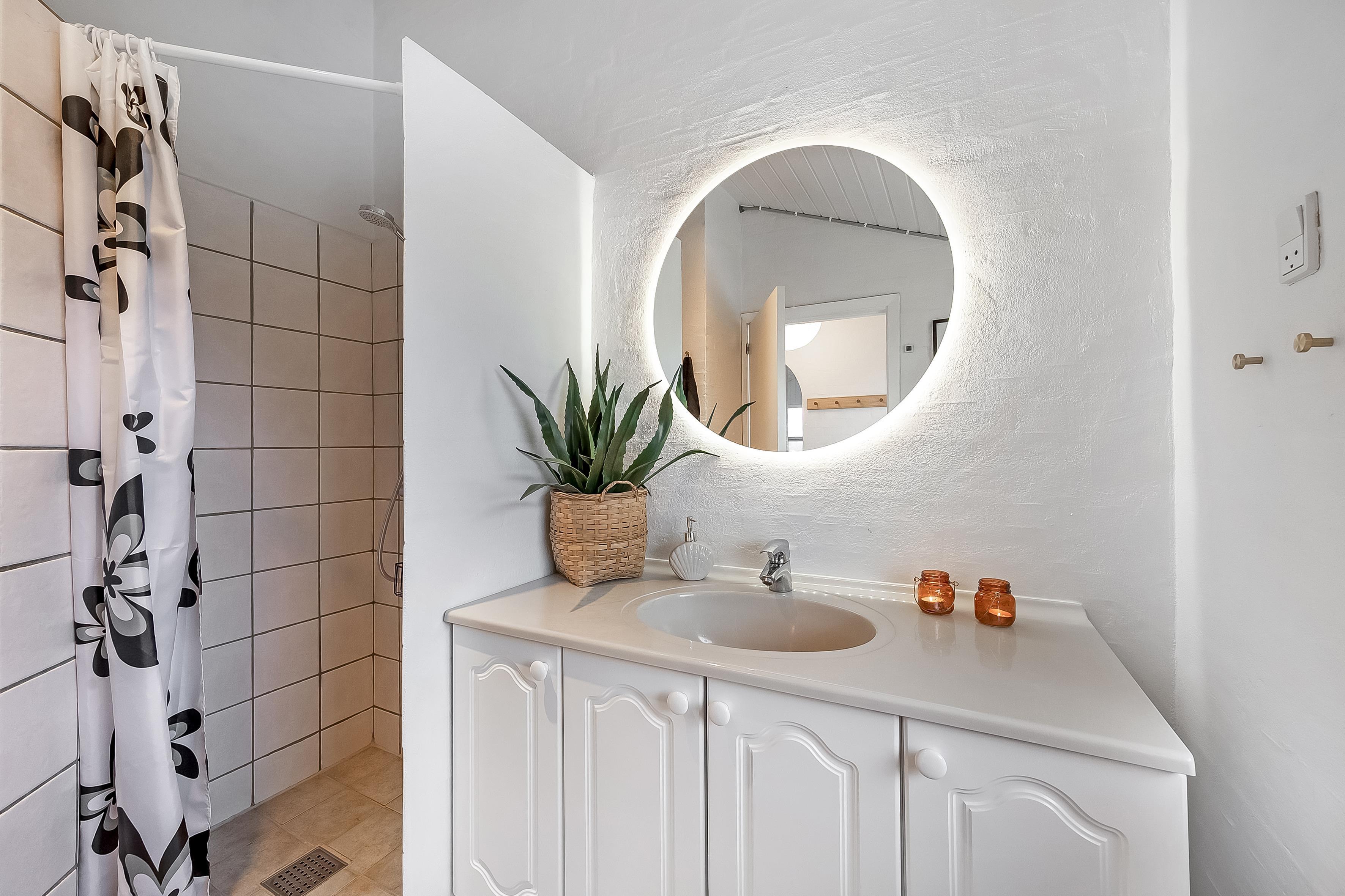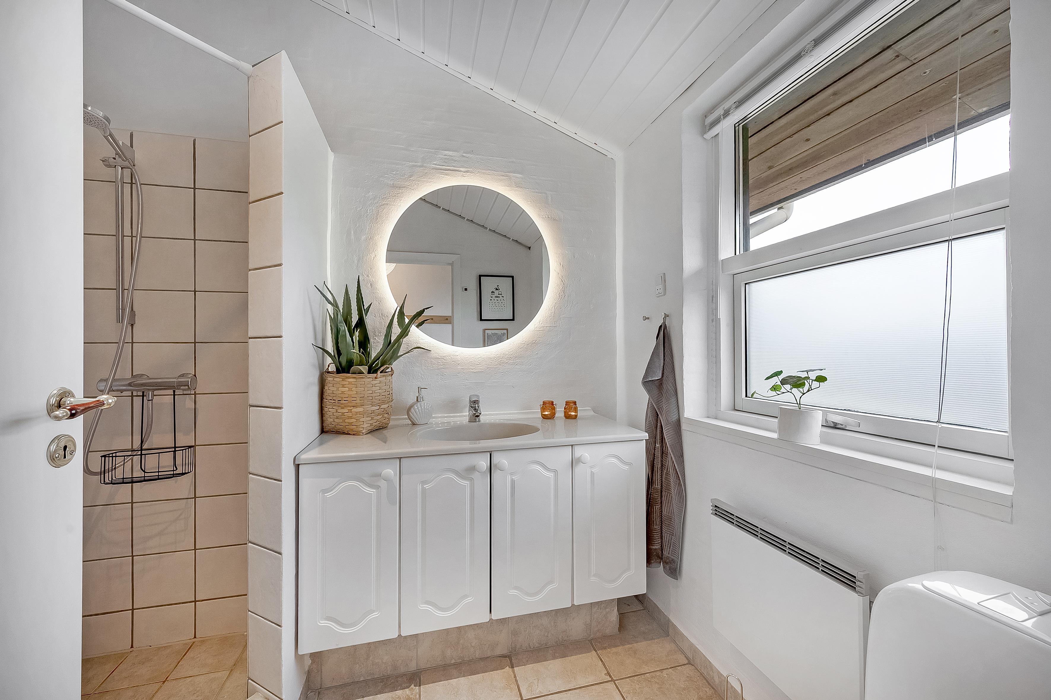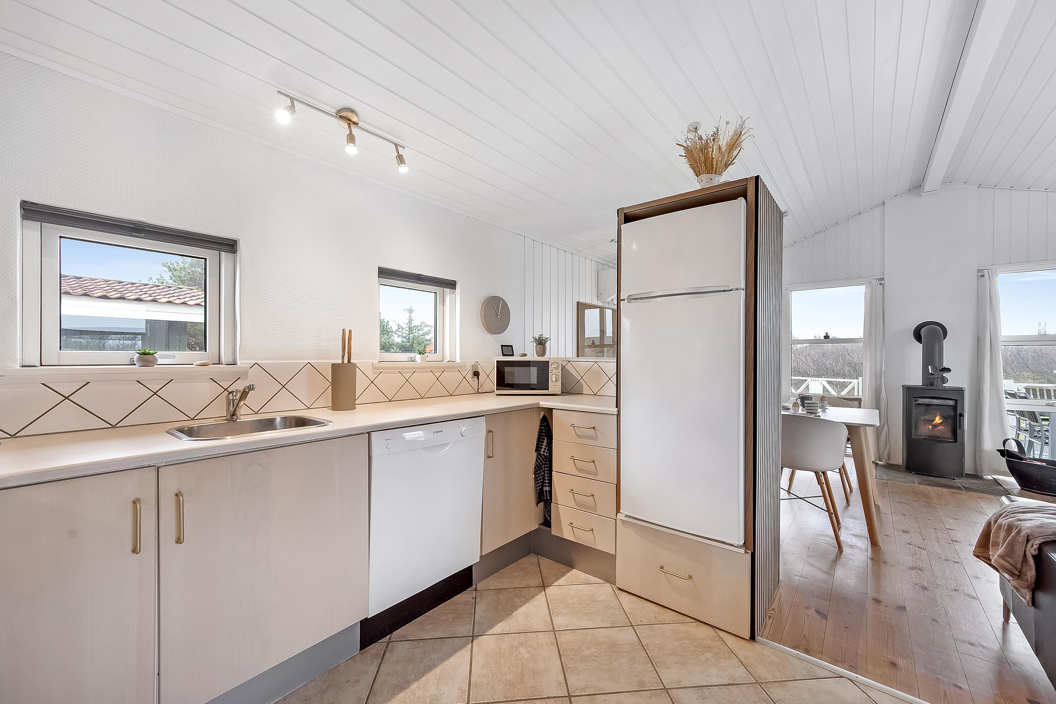 Das Wohnzimmer des Hauses, ist der perfekte Ort zum Entspannen nach einem langen Tag. Hier finden Sie einen Holzofen, der eine gemütliche Atmosphäre schafft. Es gibt eine energiesparende Wärmepumpe, die auch als Klimaanlage für die heißen Tage fungieren kann, und einen Fernseher, auf dem Sie sowohl dänisches als auch deutsches Fernsehen genießen können. Das drahtlose Internet macht es einfach, in Verbindung zu bleiben, wenn Sie es brauchen.