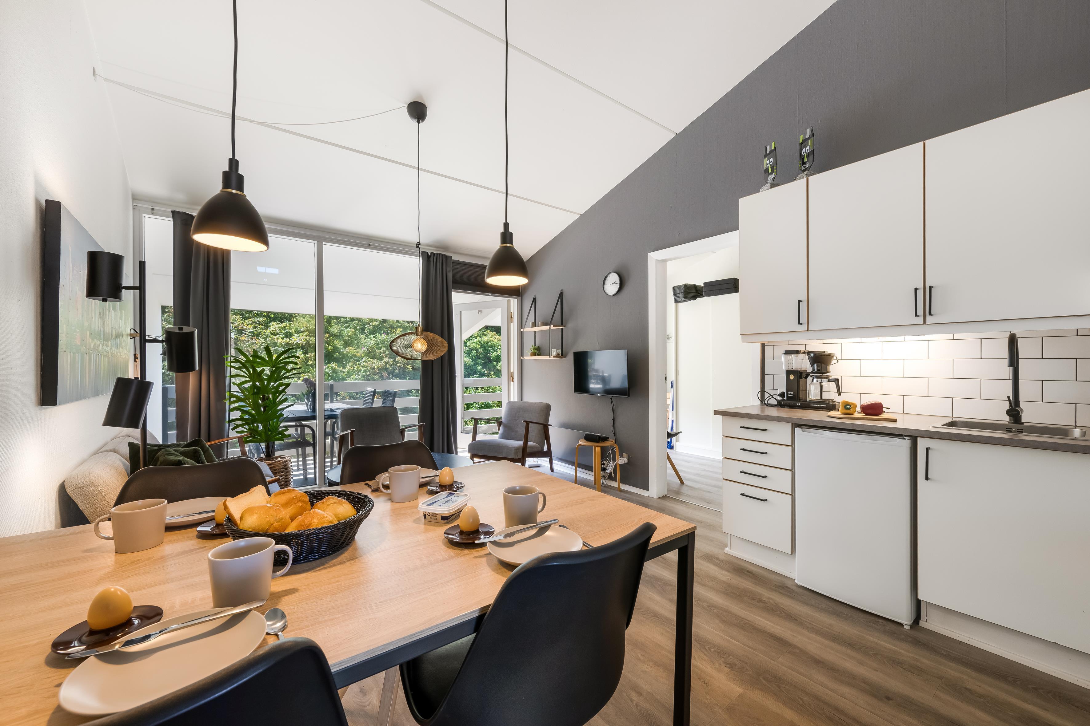 Für Unterhaltung sorgt ein Fernseher mit dänischem und deutschem Programm sowie Chromecast, sodass Sie Ihre Lieblingssendungen streamen können. Das Badezimmer ist mit einer Fußbodenheizung ausgestattet, die besonders an kühleren Tagen für zusätzlichen Komfort sorgt. Hier finden Sie auch eine Dusche und ein WC – praktisch für die ganze Familie.