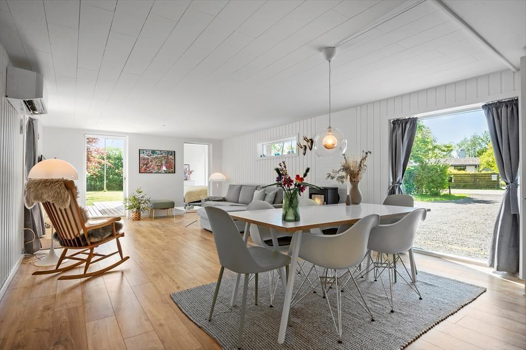 Tritt ein in eine Einrichtung, die den echten dänischen Ferienhausflair ausstrahlt – schlicht, einladend und warm. Hier findest du Platz für Ruhe und Zusammensein mit der Familie, während die hellen Räume zur Entspannung und zu schönen gemeinsamen Momenten einladen. Drei gemütliche Schlafzimmer sorgen dafür, dass sowohl Kinder als auch Erwachsene ihre eigenen Rückzugsorte für Frieden und Schlaf haben, und die gut ausgestattete Küche lädt dazu ein, Kochfreude zu erleben – vielleicht mit Hilfe der Kinder. Hier werden die Tagespläne bei einer Tasse Kaffee gemacht, oder hier werden in den weichen Sofas die besten Geschichten erzählt. Und wenn die Ruhe des Abends einkehrt, kannst du dich leicht mit einem Film oder einem guten Spiel über die Unterhaltungsmöglichkeiten des Hauses entspannen. Auch dein vierbeiniger Freund ist mehr als willkommen – hier ist Platz für Spiel und Erholung für die ganze Familie.
