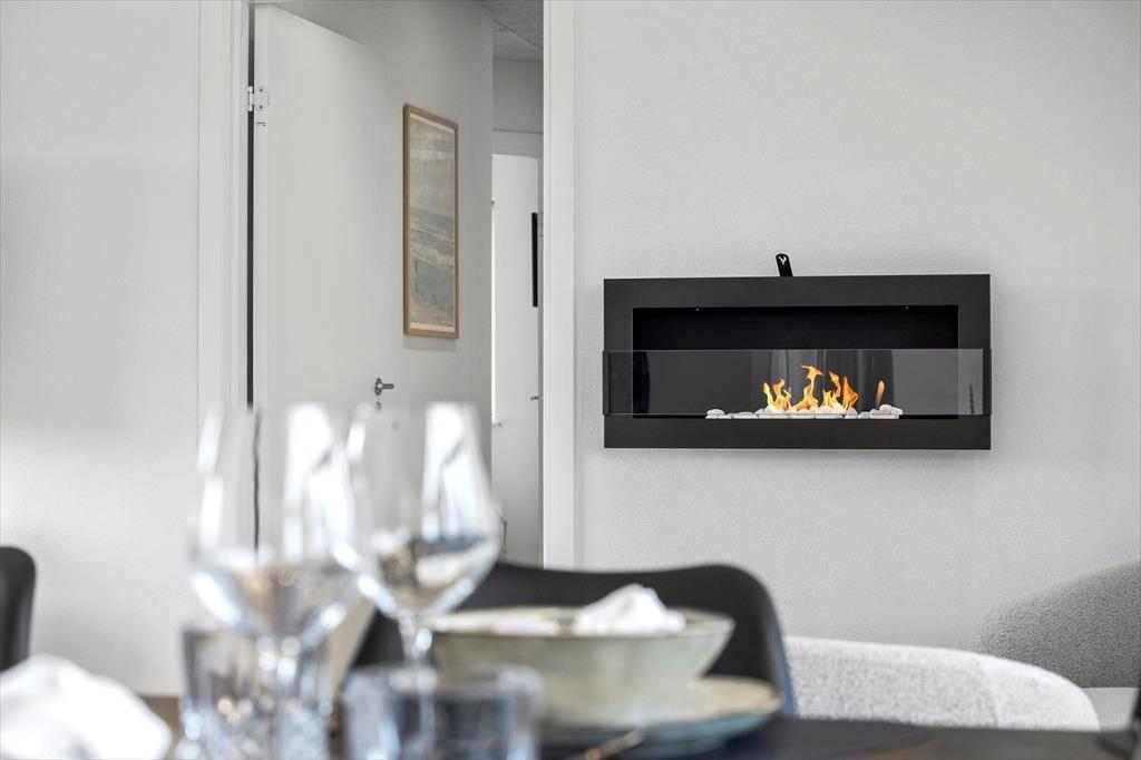 In diesem stilvollen, neu erbauten Ferienhaus in der Vesterhavsletten 45 in Saltum kannst du dich auf moderne Wohnkultur, luftiges Raumgefühl und hochwertige Materialien freuen. Der Mittelpunkt des Hauses ist der große, offene Wohnbereich mit Küche, Essplatz und Sofaecke – ideal für lange Urlaubstage mit Familie oder Freunden. Die Küche ist bestens ausgestattet für gemütliche Kochabende, bei denen Gespräche und Lachen Hand in Hand gehen. Nach dem Essen kannst du es dir auf dem Sofa bequem machen und das flackernde Licht des Bio-Kamins genießen – ganz ohne Rauch oder Holz, aber mit viel Atmosphäre. Das Interieur ist klar und geschmackvoll gestaltet, und durch die vielen Fenster holst du dir das Tageslicht und die Natur direkt ins Haus.