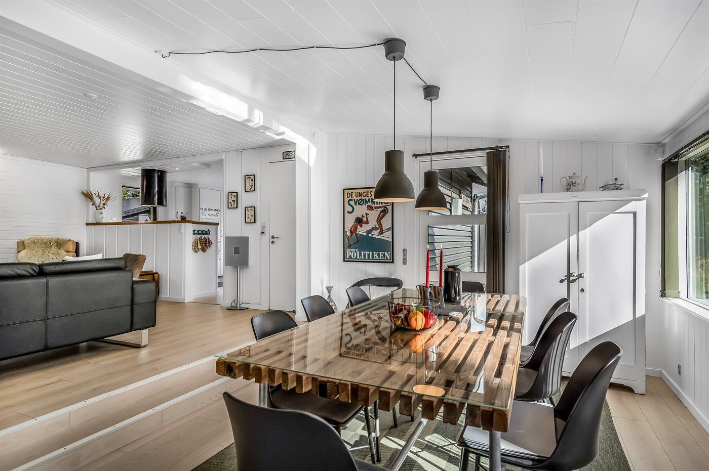 Übrigens: Eine kleine Stufe führt vom Wohnbereich in das Esszimmer hinunter.