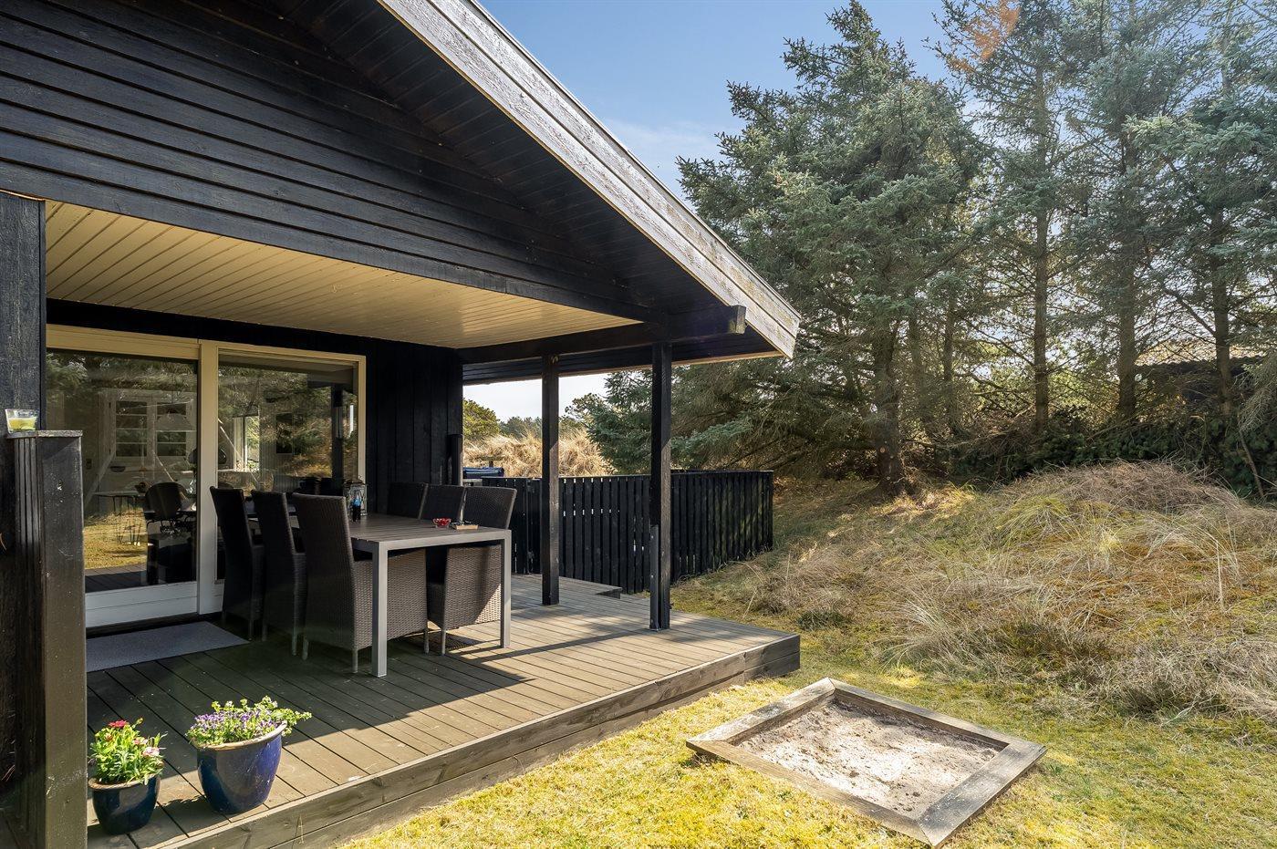 Dieses gemütliche und neu renovierte Ferienhaus liegt dicht an einem geschützten, hügeligen Gemeinschaftsgelände. Zum Haus gehören sowohl offene als auch überdachte Terrassen mit Gartenmöbeln. Innen gibt es Holzdecken und -wände sowie Teppiche. Badezimmer mit Fußbodenheizung und Dusche. Separate Sauna. Die Küche ist u. a. mit Tiefkühlgerät, Herd mit Ceran-Feld, Mikrowelle und Geschirrspüler ausgestattet. Das sehr gemütliche und persönlich eingerichtete Wohnzimmer enthält TV mit digitalem Satellitenanschluss, DVD-Spieler und Stereoanlage mit CD-Spieler und Kaminofen (Kostenloses Brennholz steht zur Verfügung). Von dem Wohnzimmer Zutritt zur überdachten Terrasse. Die Schlafplätze des Hauses verteilen sich auf 3 Zimmer; 2 Zimmer mit Doppelbett und 1 Zimmer mit Etagenbett. Ferner kostenlose ADSL-Internetverbindung (Computer ist mitzubringen), komb. Waschmaschine/Wäschetrockner und Kinderbett zur Verfügung. Ein gemütliches Ferienhaus dicht an einem der besten Badestrände Dänemarks.