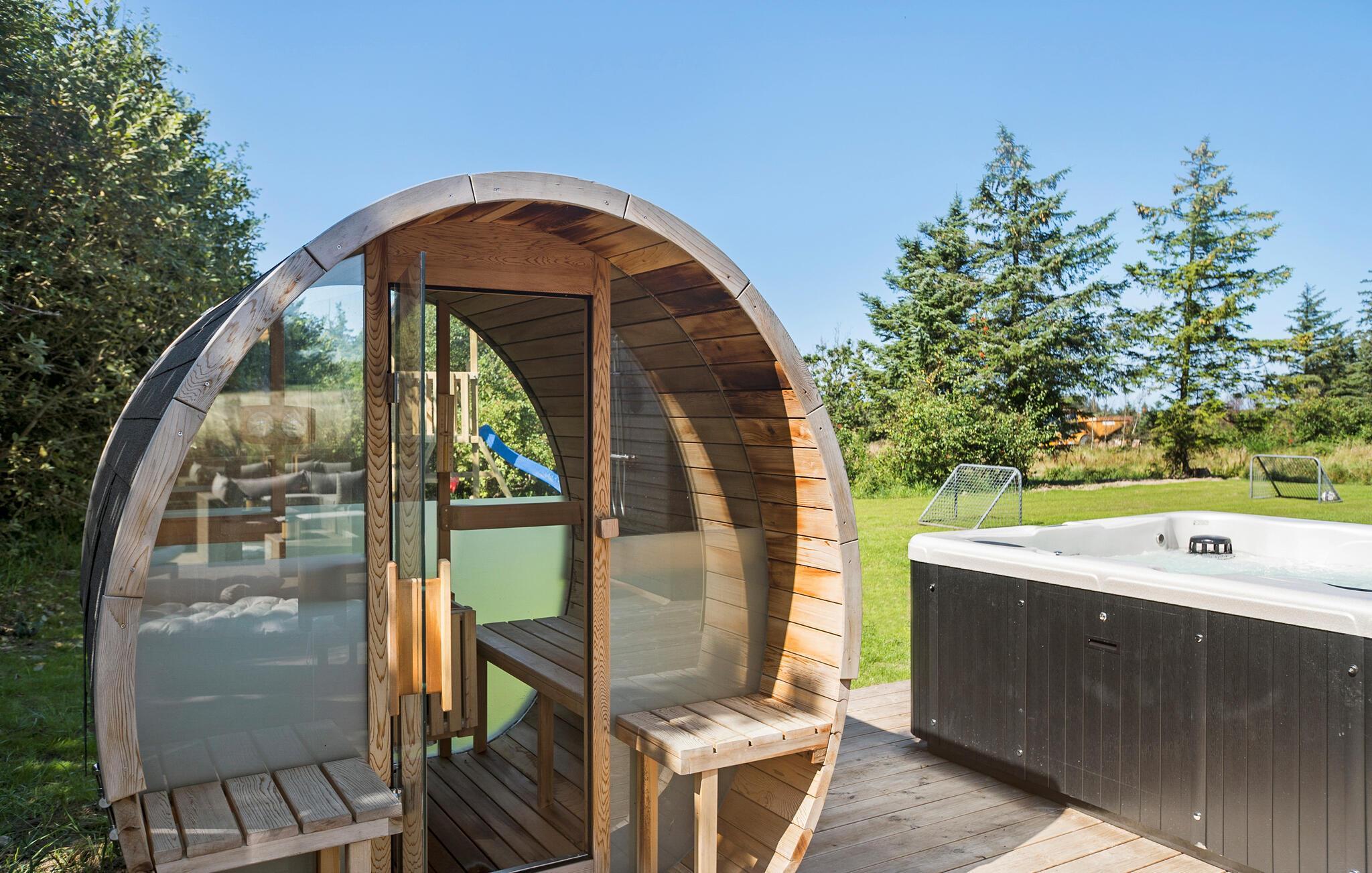 Modernes Ferienhaus nahe Saltum Strand mit Sauna, Whirlpool und großem Garten für erholsame Familienferien.