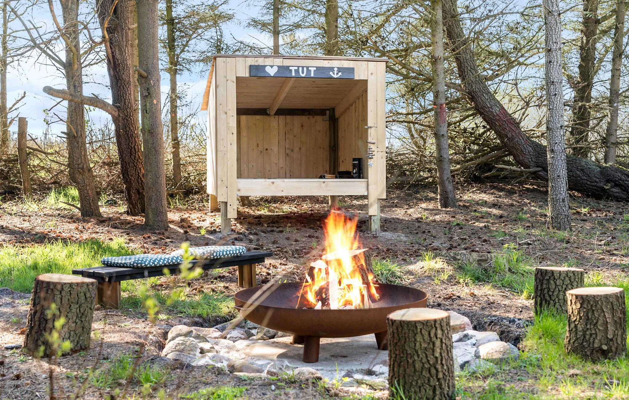 Sie können zwischen Balkon oder Terrasse wählen und dort Ihren Kaffee genießen, während Ihre Kinder den Garten erkunden. In der Abenddämmerung können Sie sich um die Feuerstelle versammeln, Stockbrot oder Marshmallows rösten und auch die Nacht im Shelter verbringen.