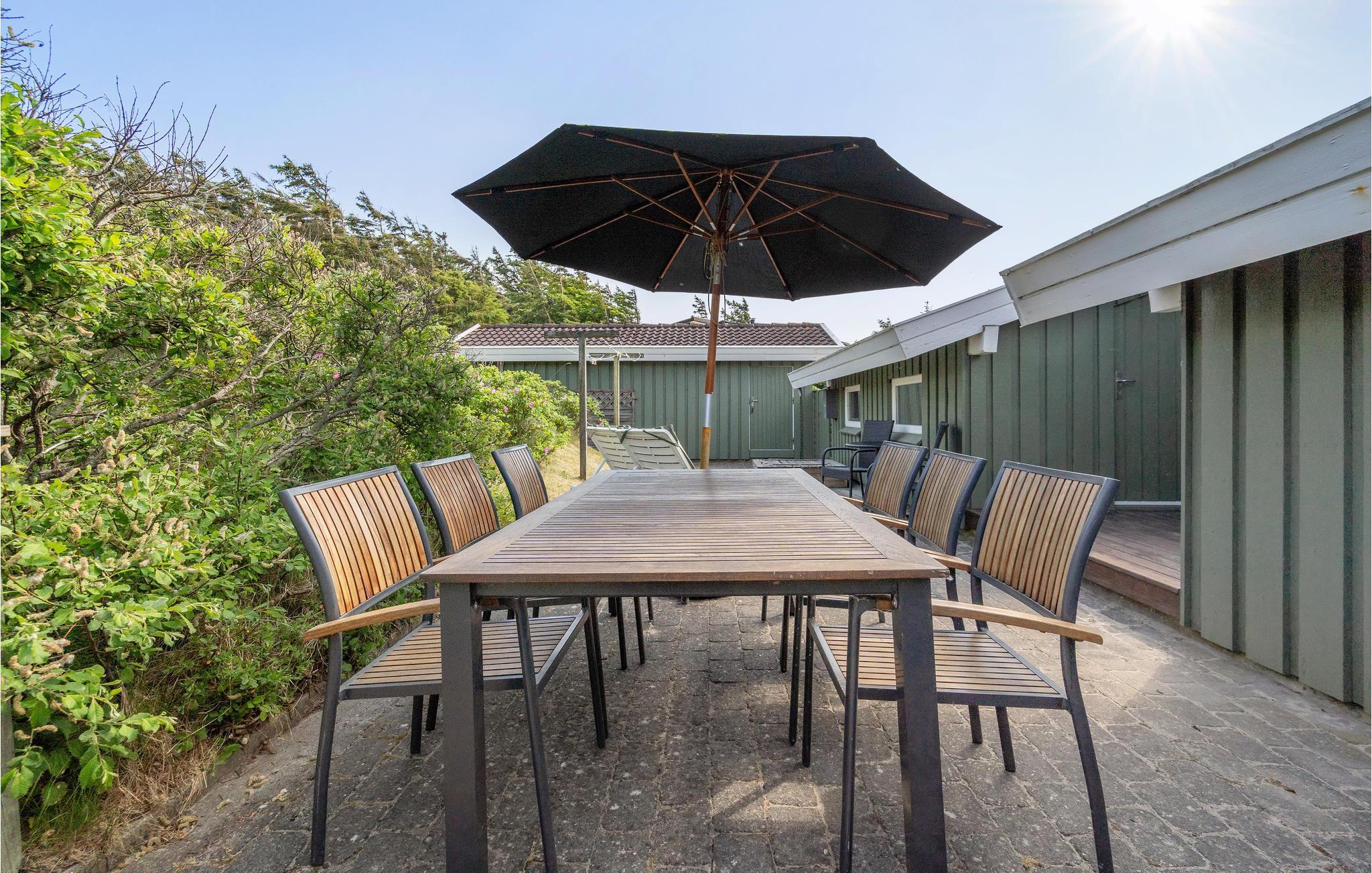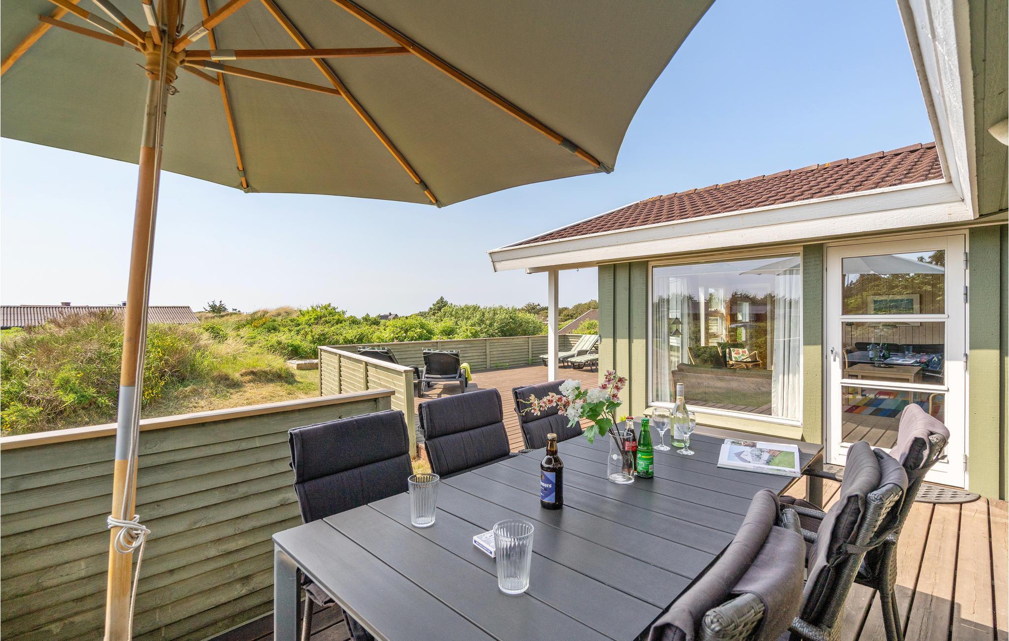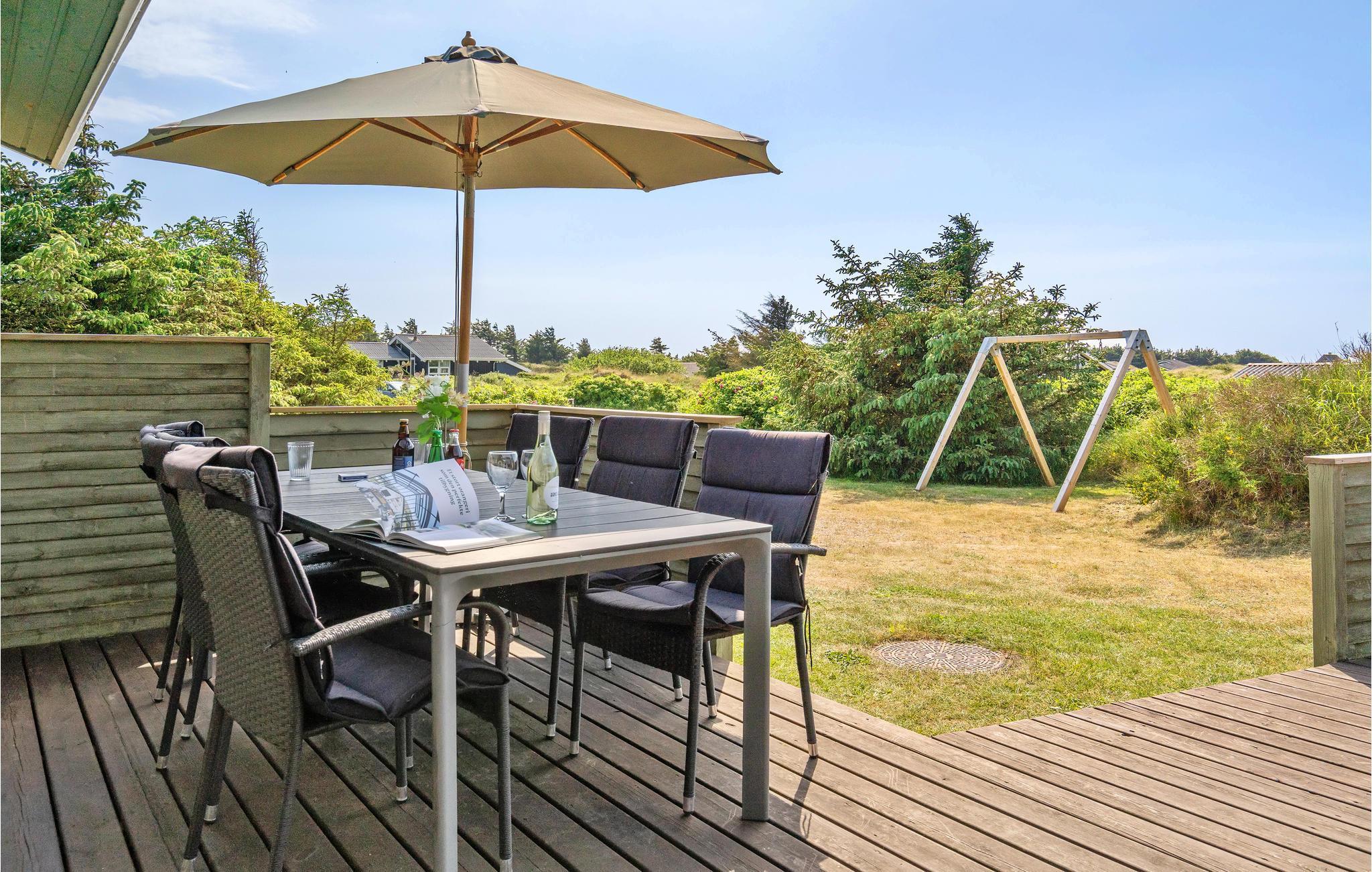 Dieses gut eingerichtete, moderne Ferienhaus liegt in einem ruhigen, naturschönen Gebiet nur wenige Gehminuten von der Nordsee. Es ist von funktionellen Holzterrassen umgeben, auf denen Sie die Sonne genießen können und immer Windschatten finden werden. Das Haus hat große Fenster, von denen man eine ausgezeichnete Aussicht aufs Meer hat, und ist gemütlich eingerichtet. Im Wohnraum gibt es Holzboden. Ein gut ausgestattetes Ferienhaus mit Platz für zwei Familien.