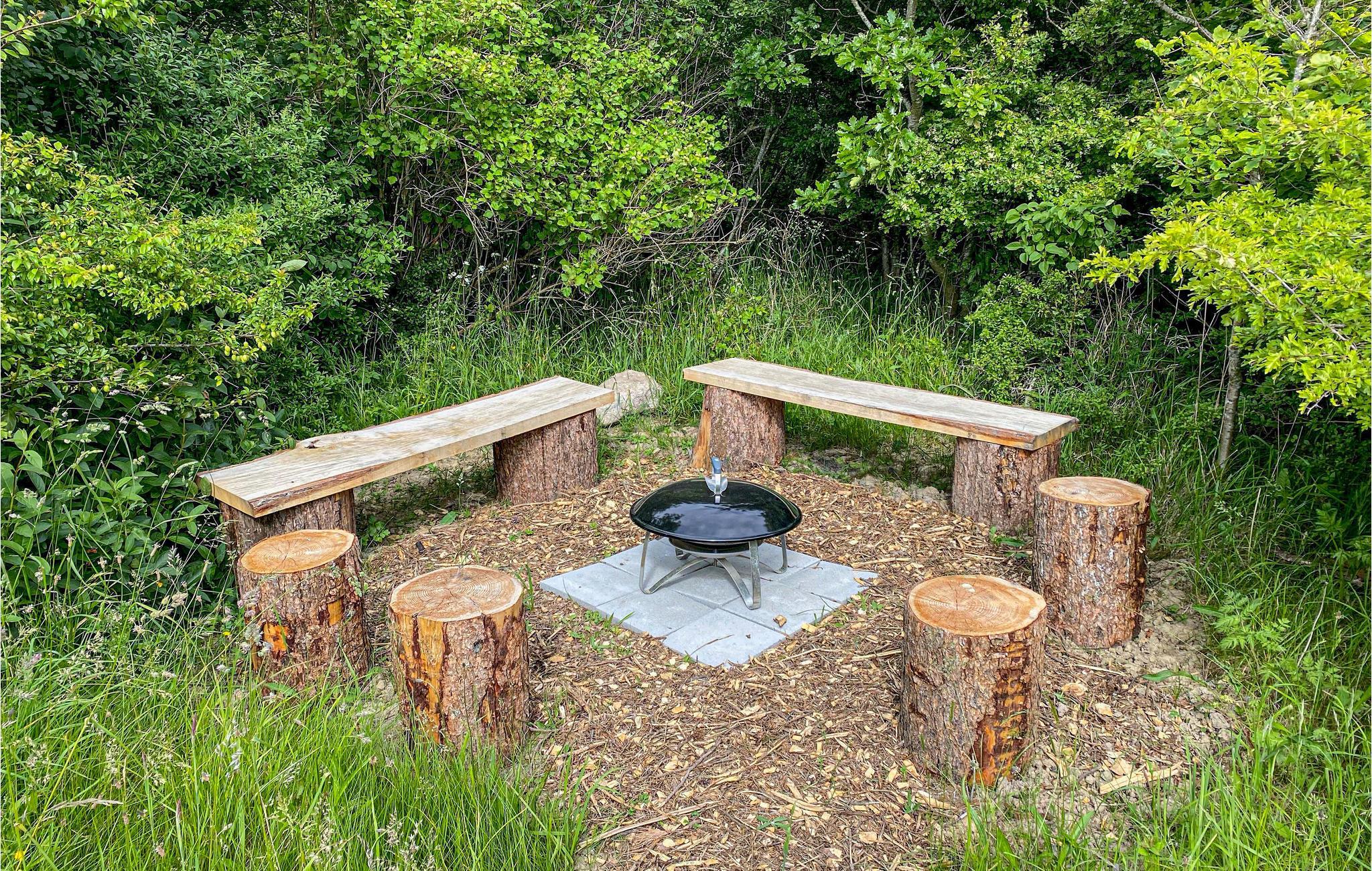 Vom Wohnzimmer gelangen Sie in den großen offenen Terrassenbereich mit 125 m² und auf eine überdachte Terrasse mit 27 m², die nach Westen gerichtet ist, somit finden Sie immer ein windgeschütztes Plätzchen am Haus, wo Sie die Sonne genießen können. Das große Grundstück ist geschlossen und herrlich ungestört. An der Feuerstelle können Sie schöne Abende am Lagerfeuer verbringen.