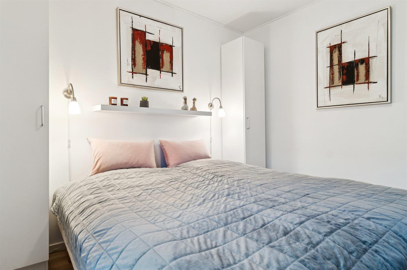 Die Schlafplätze verteilen sich auf 2 Schlafräume. 2 Schlafplätze in einem Doppelbett. 2 Schlafplätze in Einzelbetten.