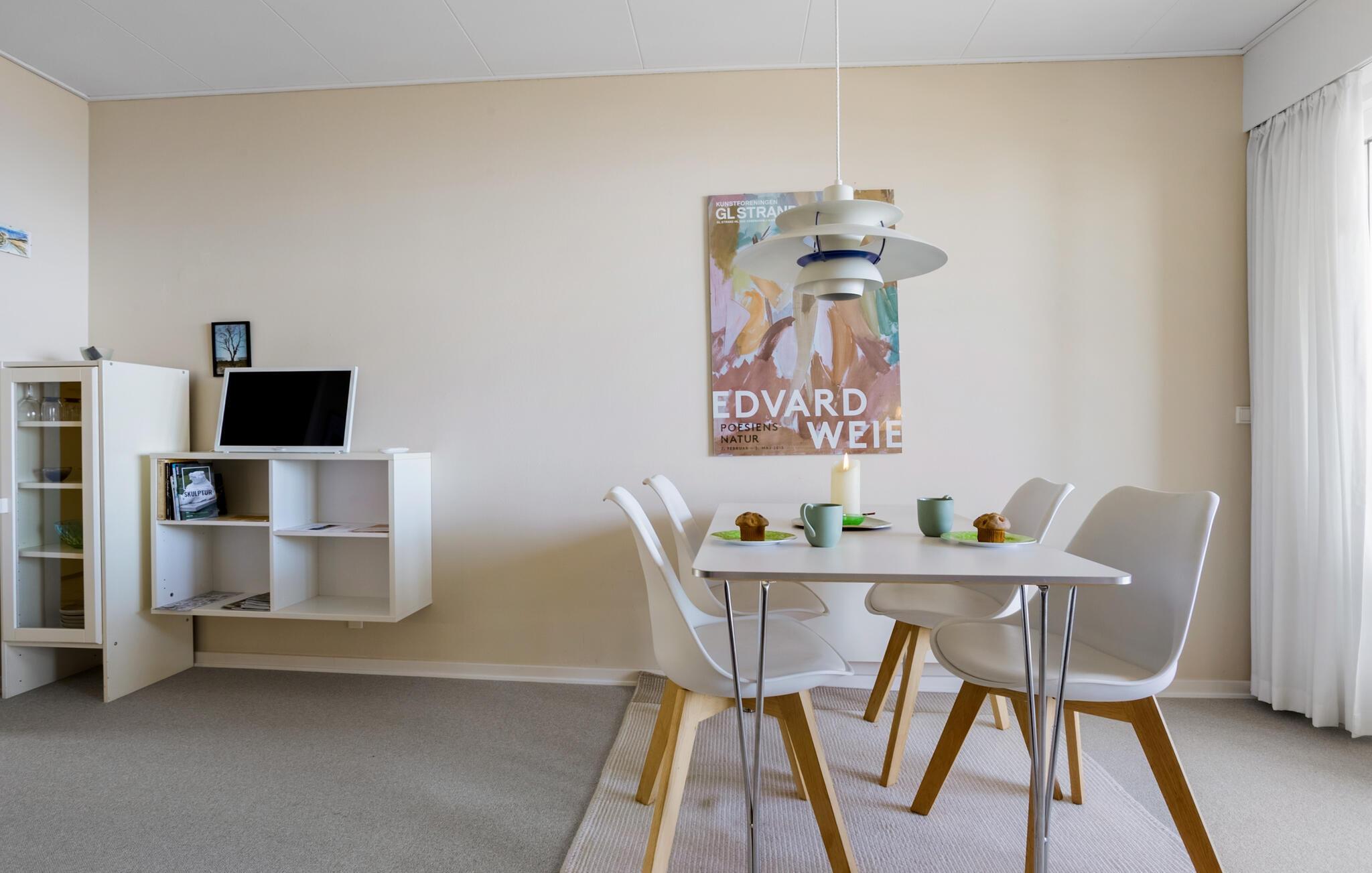 Dieses helle und geschmackvoll eingerichtete Studio im Erdgeschoss bietet Ihnen ein behagliches Refugium, während Sie sich an der frischen Seeluft Bornholms vom Alltag erholen. Bereiten Sie sich leckere Gerichte aus regionalen Produkten zu, planen Sie Ihre Unternehmungen bei harmonischen Mahlzeiten am behaglich beleuchteten Esstisch und ruhen Sie sich nach einem aktiven Tag bei einem Film oder einem guten Buch auf dem gemütlichen Sofa aus.