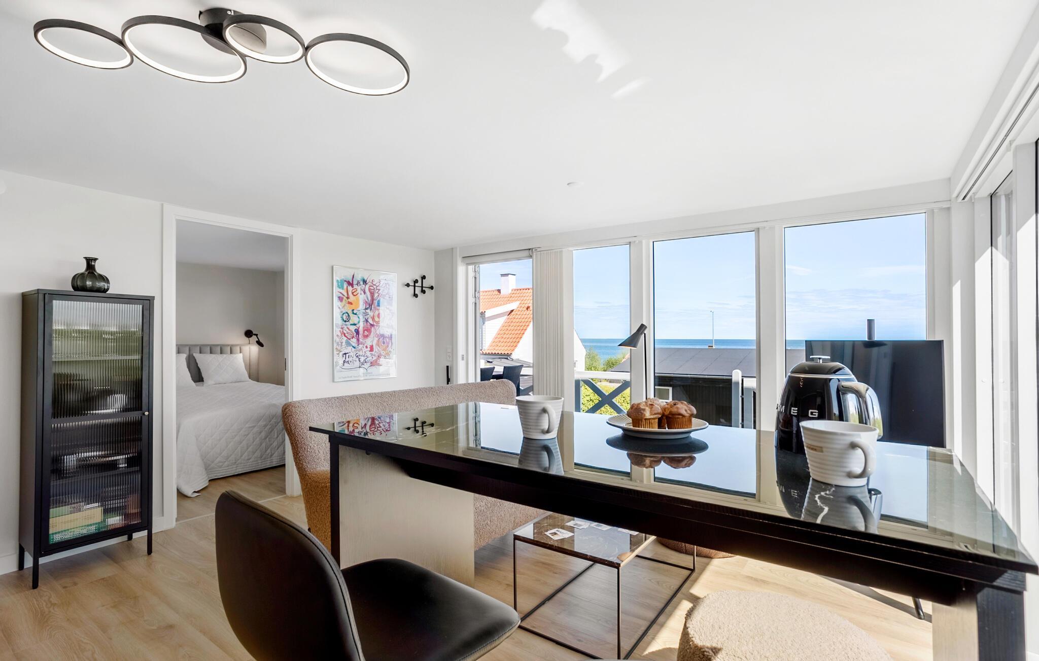 Mit seiner schlichten, aber funktionalen Einrichtung und der fantastischen Aussicht auf die Ostsee bietet Ihnen Ihr Ferienhaus in Sandkås-Tejn eine angenehme Basis für entspannte Tage am Meer. Machen Sie es sich in der hellen Wohnstube bequem und genießen Sie den wunderbaren Meerblick durch die großen Fenster. Der offene Wohn- und Küchenbereich bietet Ihnen alles, was Sie für einen unkomplizierten Aufenthalt benötigen. Schwingen Sie in der modernen Küche die Kochlöffel und nutzen Sie die gemütliche Sitzecke für erholsame, gemeinsame Stunden.