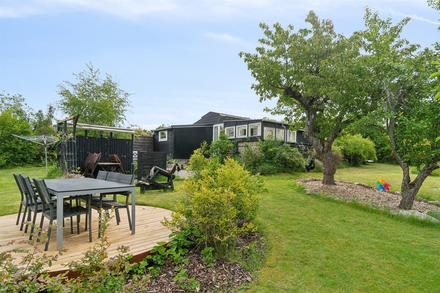 Die gemütliche Wohnküche liegt in offener verbindung mit dem Wohnzimmer, von dem aus man Zugang zum hellen Wintergarten hat, wo man viele gemütliche Stunden verbringen kann. Es gibt mehrere schöne Terrassen, auf denen man die Sonne genießen, aber auch Schutz vor dem Wind und Schatten finden kann. Eine Lagerfeuerstelle steht ebenfalls zur Verfügung.