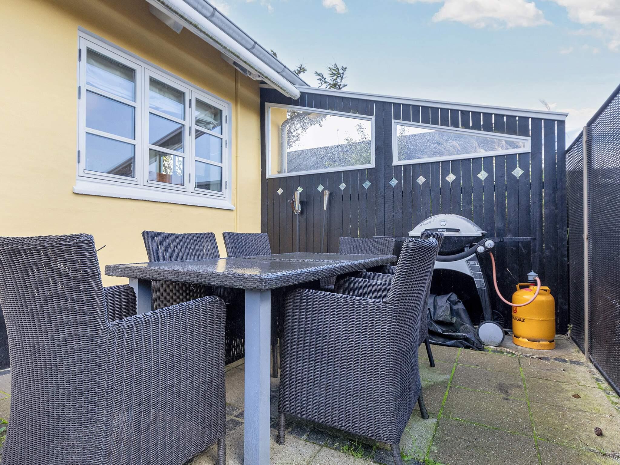 Vom Wohnzimmer aus hat man direkten Zugang zu einer großen Terrasse mit einem gemütlichen Garten. Hier kann man sich in einem der Sonnenliegen des Hauses ausstrecken oder einen gemütlichen Grillabend unter der Markise mit einem Glas kühlem Sekt genießen. Für die Jüngsten der Familie oder die größeren Spielkinder gibt es eine Schaukel. Insgesamt lädt das Äußere des Hauses dazu ein, den dänischen Sommer in vollen Zügen zu genießen. Außerdem besteht die Möglichkeit, direkt am Haus zu parken, sodass man sein Gepäck nicht weit tragen muss. Bitte beachten Sie, dass Wasser im Mietpreis inbegriffen ist und dass das Haus nicht an Jugendliche vermietet wird.