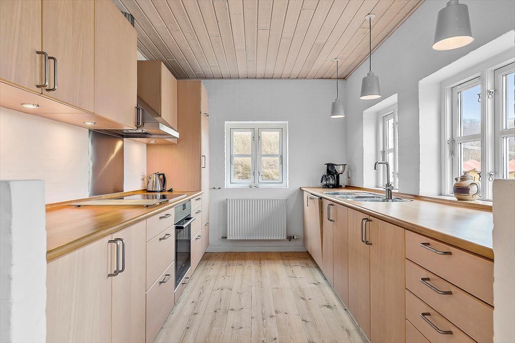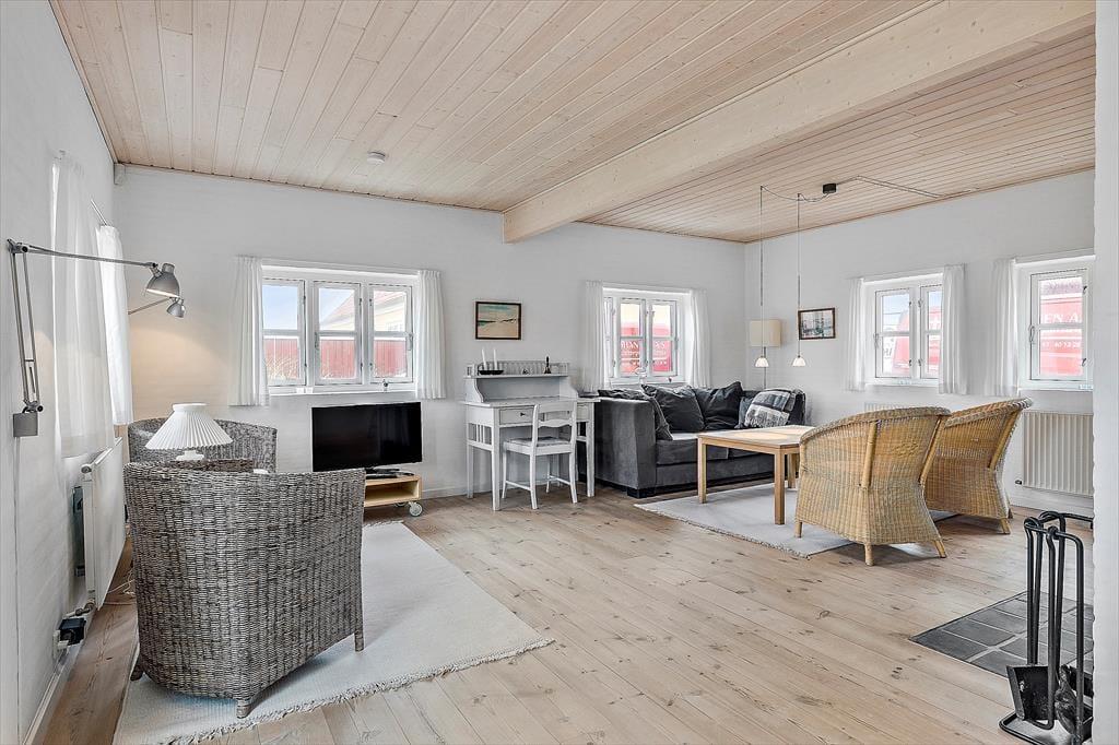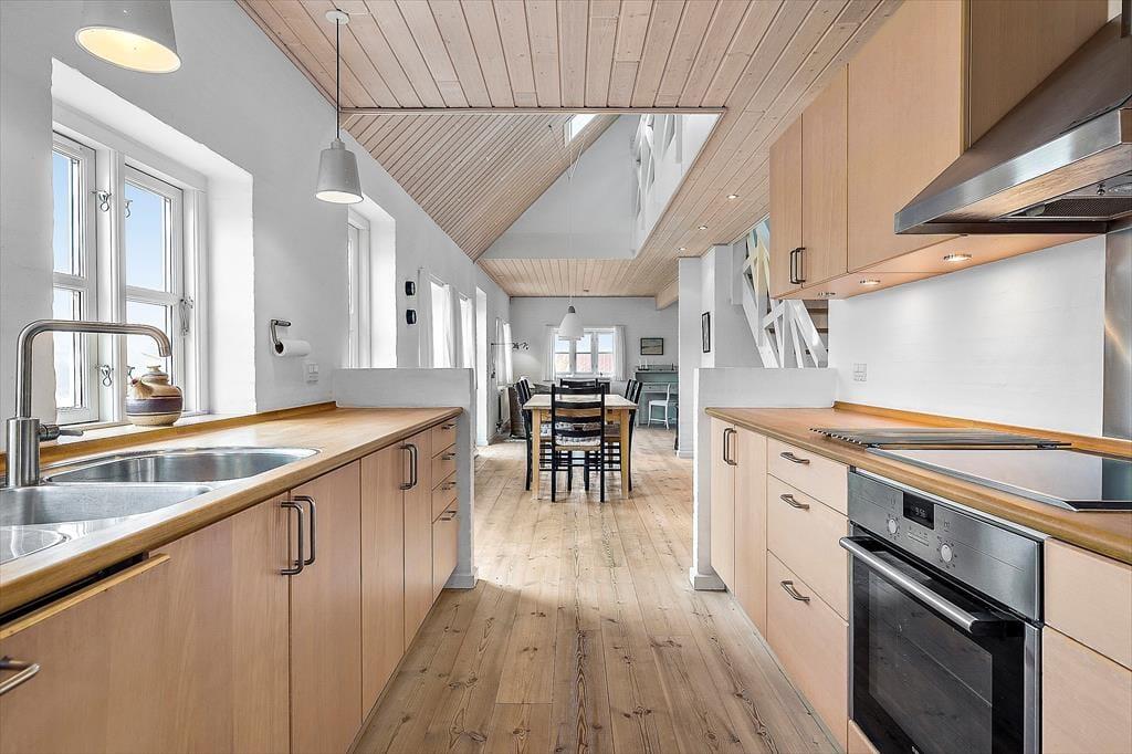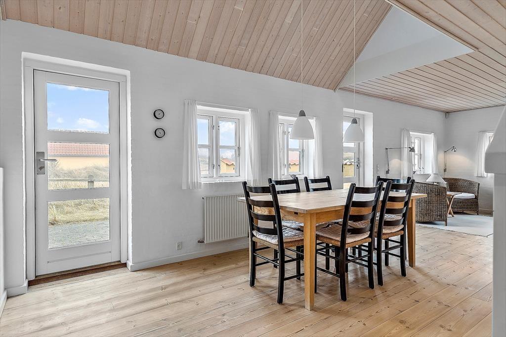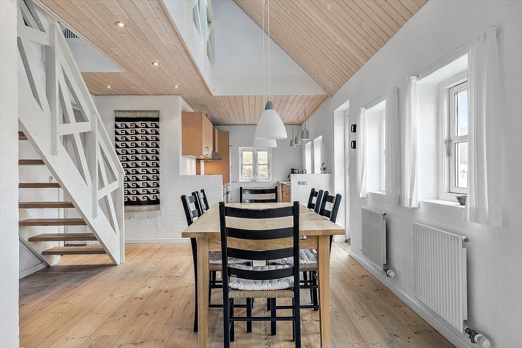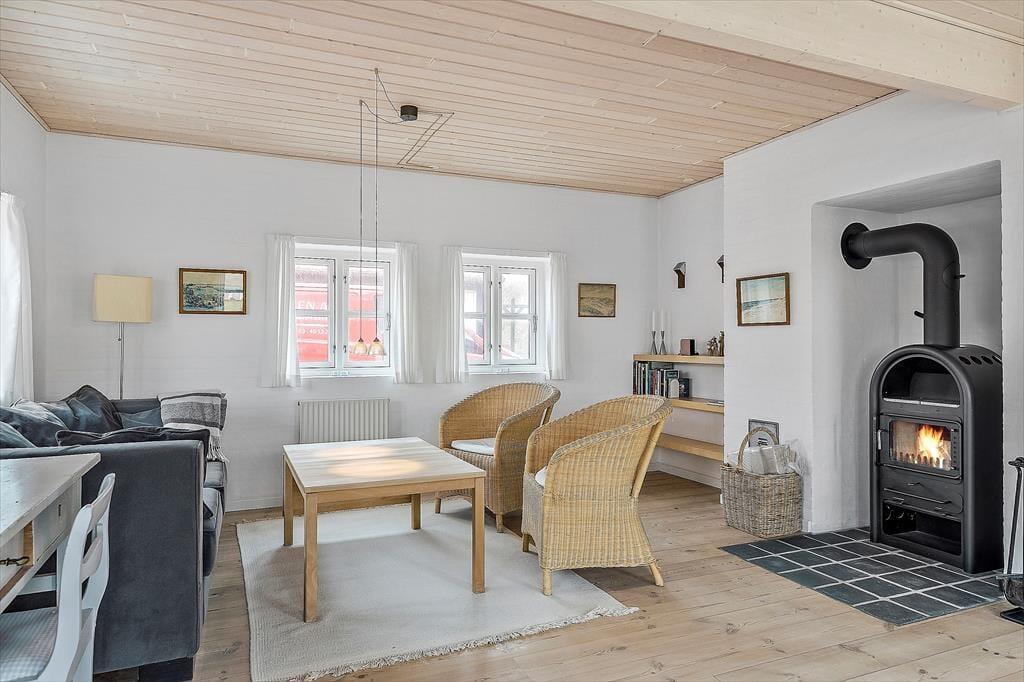 Wenn du das Ferienhaus betrittst, wirst du von einer einladenden Atmosphäre mit viel Licht und einer geräumigen Einrichtung empfangen, die es leicht macht, sich zu entspannen. Der durchdachte Grundriss bietet Platz für gemeinsames Beisammensein und Gemütlichkeit, und das Wohnzimmer wird zum natürlichen Treffpunkt der Familie. Hier kannst du die Wärme des Kaminofens an kühlen Abenden genießen und dich mit einem guten Buch oder Film entspannen. Die Küche ist praktisch und offen, sodass du leicht Teil der Unterhaltung sein kannst, während du Mahlzeiten zubereitest. Das Haus verfügt auch über komfortable Schlafzimmer, in denen du nach einem langen Tag am Strand oder bei Erkundung der Umgebung eine gute Nachtruhe finden kannst.