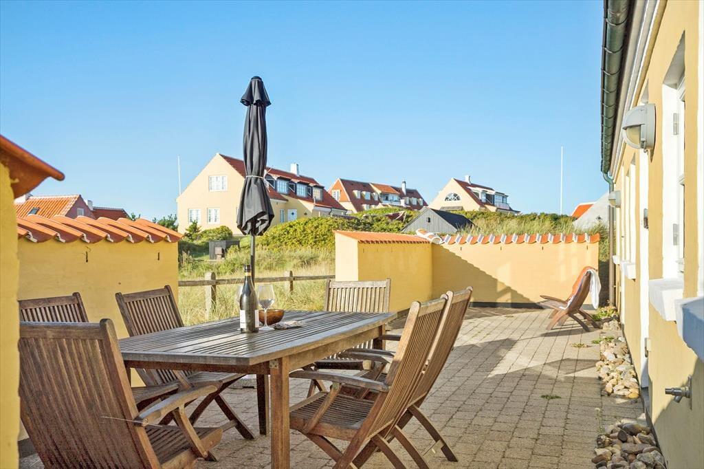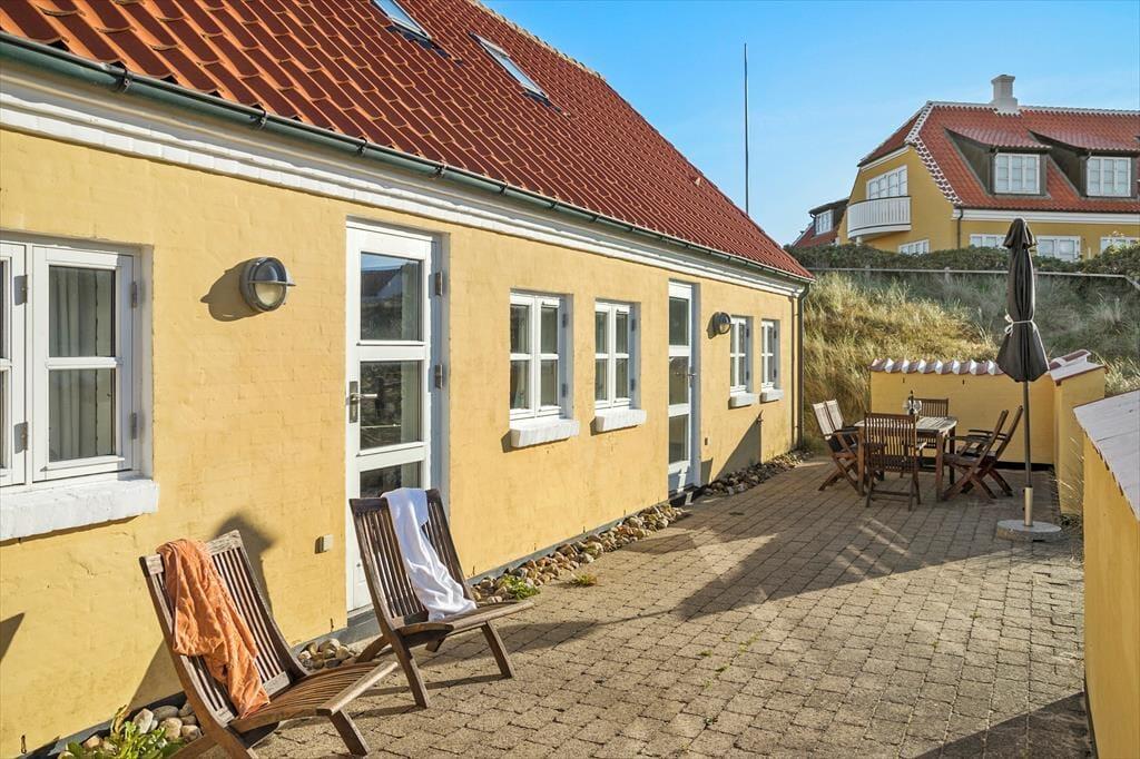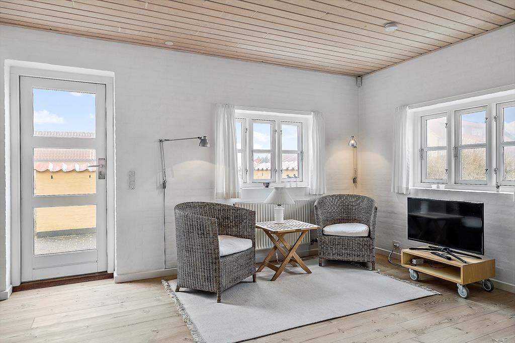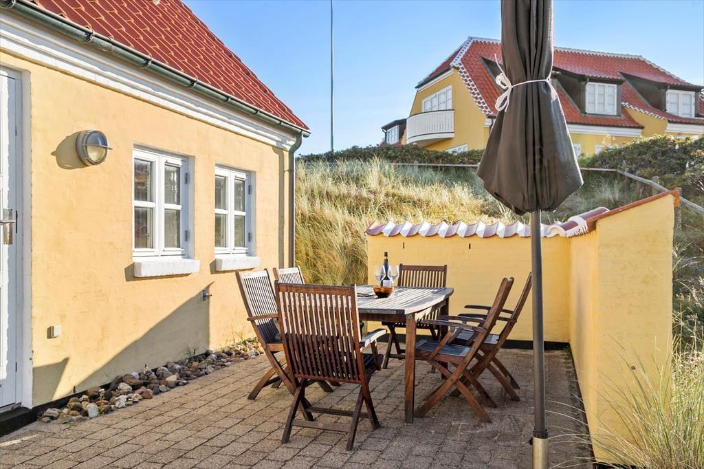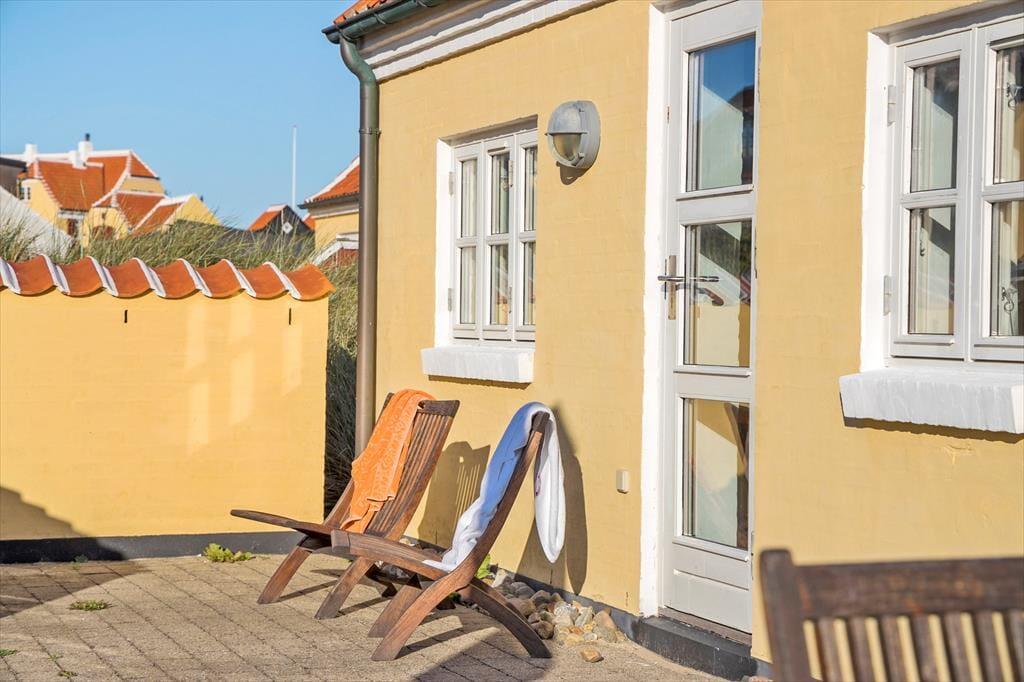 Das Ferienhaus bietet eine schöne Terrasse, auf der du lange Tage im Freien verbringen kannst. Hier gibt es viel Platz, um sich mit einem guten Buch zu entspannen, eine Pause auf den Liegestühlen zu machen oder das Abendessen auf dem Grill zuzubereiten, während du die frische Luft genießt. Die Sackgasse sorgt für zusätzliche Privatsphäre und Ruhe, und mit dem Gl. Skagen Strand nur 100 Meter entfernt, ist es einfach, ein erfrischendes Bad im Meer zu nehmen oder einen Spaziergang entlang der Küste zu unternehmen. Die Terrasse ist ideal, um den Tag mit einem Morgenkaffee zu beginnen und ihn mit einem Grillabend unter freiem Himmel zu beenden.