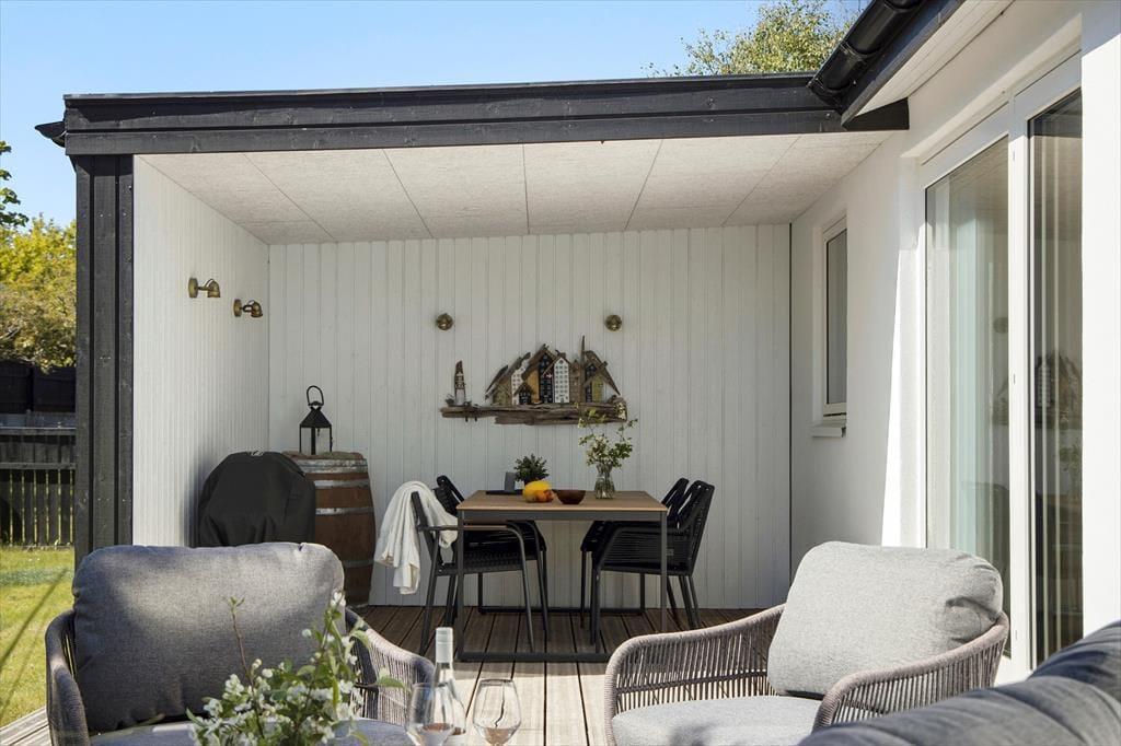 Draußen setzt sich die friedliche Stimmung auf der Terrasse fort, wo du die Sonne von morgens bis abends genießen oder die klare, frische Luft Skagens in dich aufnehmen kannst. Hier ist Platz für Entspannung und gemütliche Momente, sei es bei einer ruhigen Zeit mit einem Buch oder einem gemeinsamen Essen unter freiem Himmel. Der gepflegte Garten ist von grüner Umgebung umgeben und bietet private Rückzugsmöglichkeiten, während du den Himmel und die schöne Natur in unmittelbarer Nähe hast. Hier findest du die perfekte Balance zwischen Komfort und nordischer Gelassenheit.