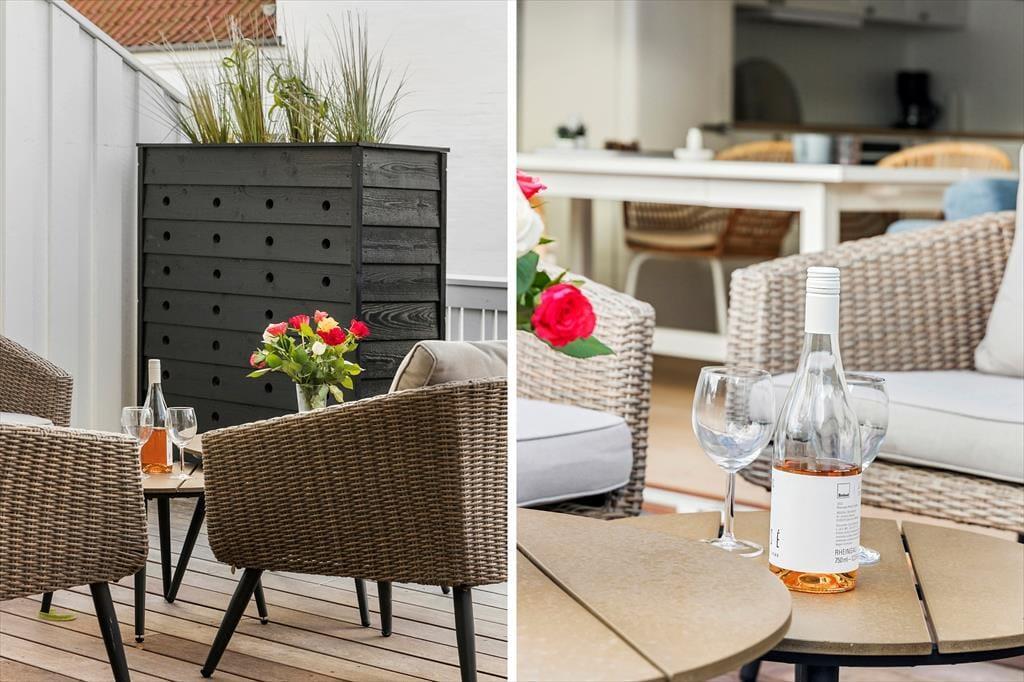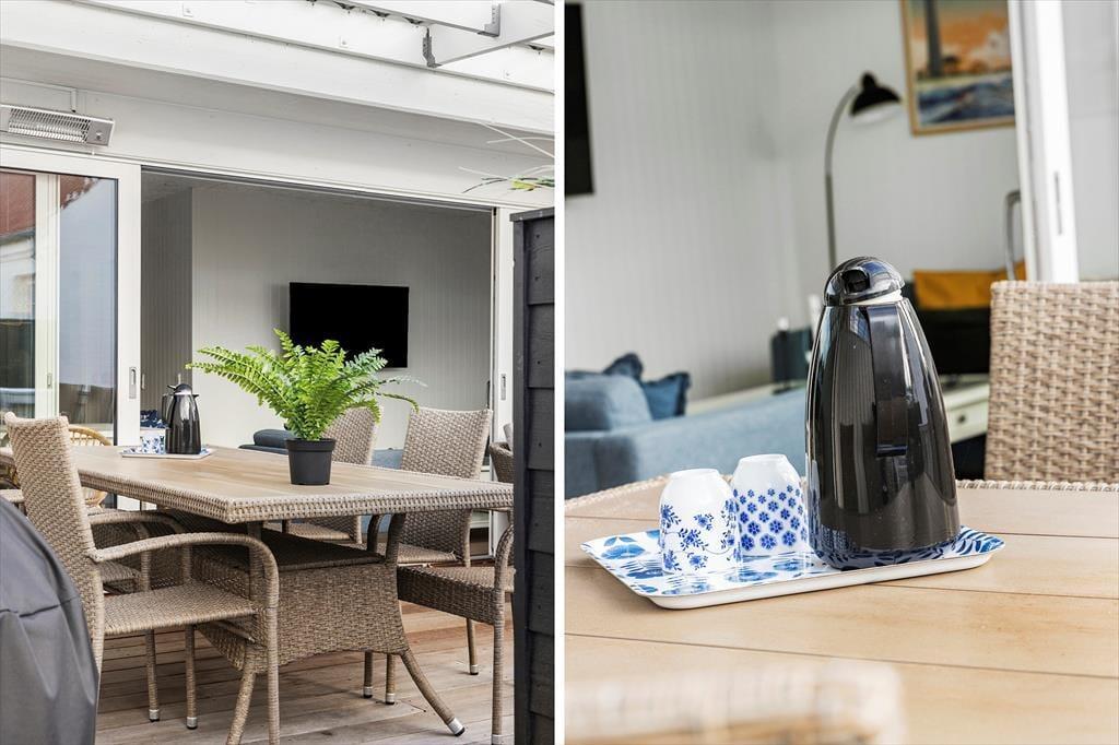Die kleine, gemütliche Terrasse ermöglicht es dir, die Urlaubstage im Freien zu genießen. Hier kannst du den Tag mit einer Tasse Kaffee in der Morgensonne beginnen oder den Abend mit einem guten Abendessen ausklingen lassen. Die Terrasse bietet bequeme Sitzmöglichkeiten, die dazu einladen, sich zu entspannen und die ruhige Atmosphäre zu genießen, während du dem Vogelgesang lauschst und die frische nordjütländische Luft einatmest. Die intime Atmosphäre und die ruhige Lage machen es leicht, die Urlaubsstimmung zu finden und einfach im Moment zu sein.