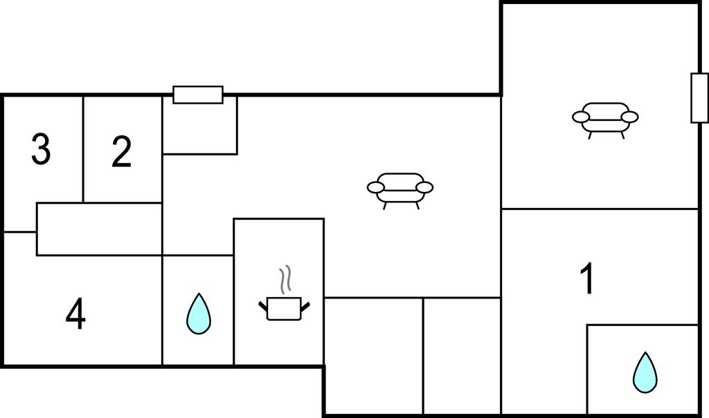Das Ferienhaus ist mit vier guten Schlafzimmern und zwei Bädern ausgestattet. Im offenen Wohnzimmer mit großen Fensterfronten lässt es sich wunderbar am Kamin entspannen. Von hier gelangen Sie auf die Terrasse, die sich hinter dem Haus befindet. Genießen Sie hier die Sonne bei den Mahlzeiten des Tages. In einem Badezimmer befindet sich nur eine Handbrause in der Badewanne.
