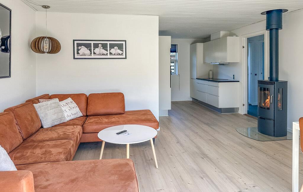 Das Haus begrüßt Sie in schöner Lage nahe dem Strand und guten Wandermöglichkeiten. Die hellen Räume bilden den idealen Rahmen für eine schöne gemeinsame Zeit in wohnlichem Ambiente. Genießen Sie die gemeinsamen Mahlzeiten vor bodentiefen Fenstern mit schönem Blick ins Freie. Nach einem erlebnisreichen Tag lädt das bequeme Sofa zu einem Film- oder Spieleabend ein, hier können Sie noch lange gemütlich zusammensitzen, während die Flammen im Kaminofen prasseln.