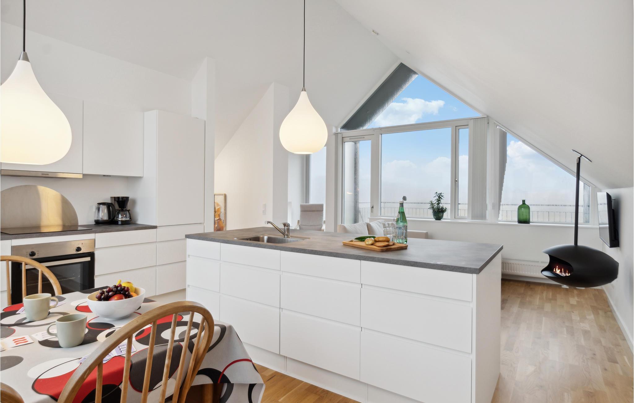 Willkommen in diesem modernen Reihenhaus in einer landschaftlich reizvollen Gegend mit Blick auf Nordstrand. Auf zwei Etagen finden Sie den idealen Ort, um sich zu entspannen und sich beim Kochen in der vollständig ausgestatteten Küche zu entspannen. Während sich die Schlafräume im Erdgeschoss befinden, können Sie im 1. Stockwerk mit schöner Aussicht zu geselligen Stunden zusammenkommen. In den kühleren Monaten schafft der stilvolle Gasofen den idealen Rahmen für einen gemütlichen Filmabend, während Sie die lauen Sommerabende auf den beiden Balkonen oder Terrassen, die nach Osten oder Westen ausgerichtet sind, verbringen.