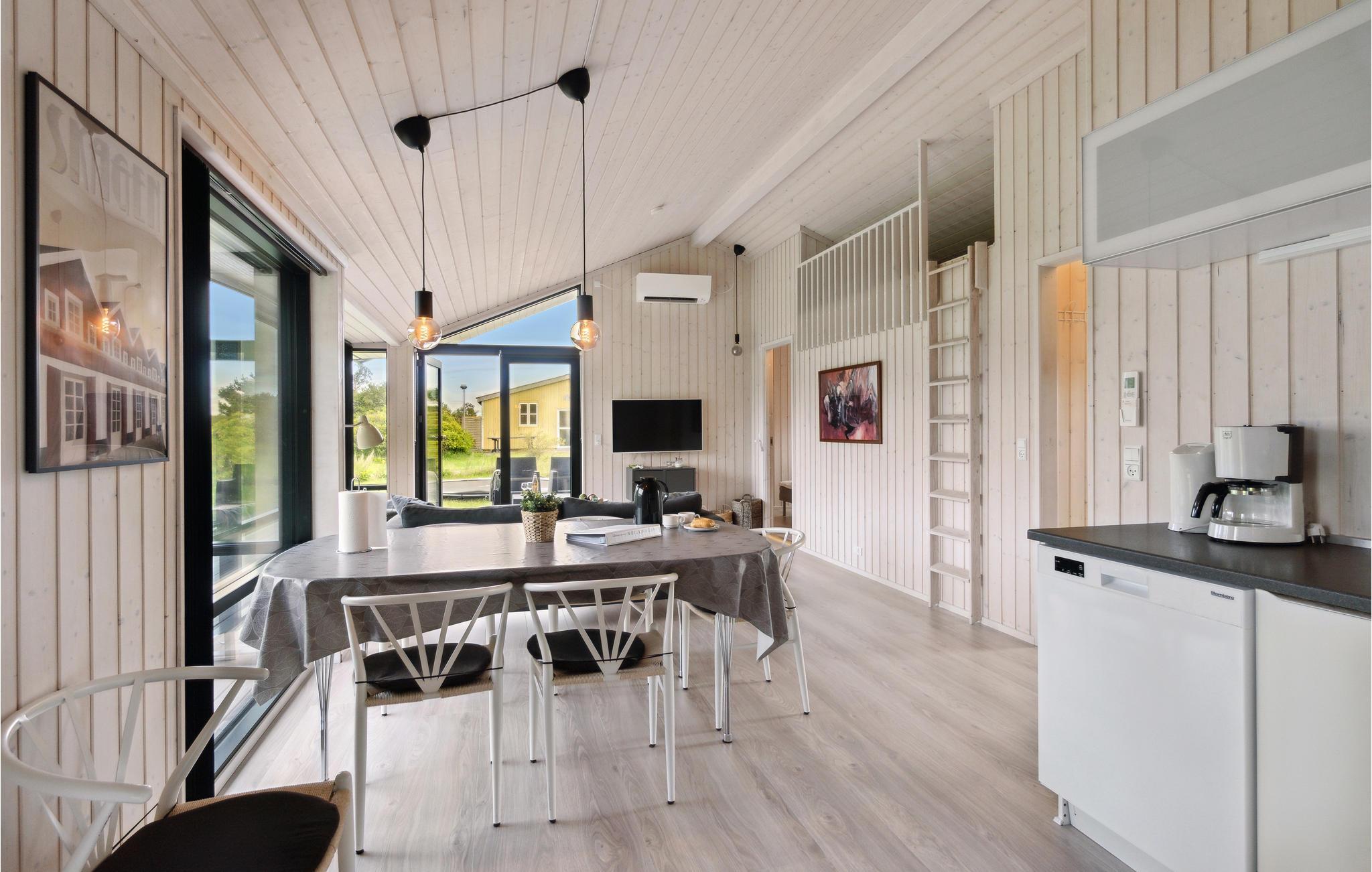 In sehr ruhiger Lage im nördlichen Skagen erwartet dieses Ferienhaus seine Gäste, von hier aus haben Sie es nicht weit zur fantastischen Natur und zum pulsierenden Leben im Zentrum von Skagen. Die helle Holzverkleidung und die moderne Einrichtung verleihen den Räumen ihren Charme, sie bilden den idealen Rahmen für eine schöne Auszeit, in der Sie Strandvergnügen, Naturerlebnisse und spannende Ausflüge ideal kombinieren können. Ein besonderes Highlight sind die Panoramafenster, durch die Sie beim Essen oder beim Entspannen auf dem Sofa einen herrlichen Blick ins Freie haben.