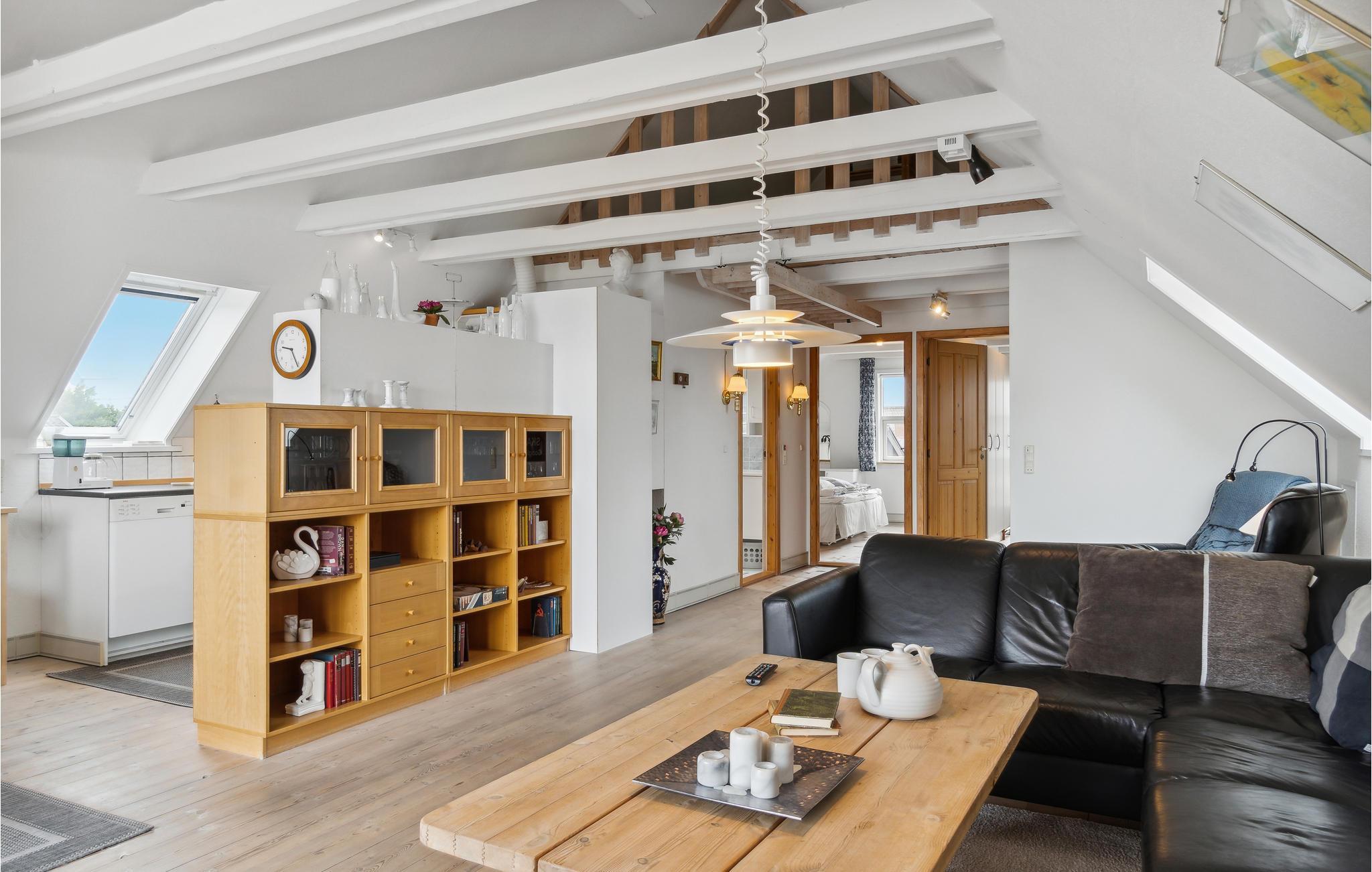 Schöne Ferienwohnung im ersten Stock. Sie liegt im Nordwesten vom Ort Skagen, in einer großen Villa. Die Wohnung ist geräumig und einladend. Vor dem Wohnzimmer liegt ein Balkon nach Westen. Zur Wohnung gehört auch eine Terrasse zum Genießen. Die schönen Möbel sind bequem. Praktische Küche und schönes Badezimmer. Das Schlafzimmer 2, gleich bei der Treppe, ist zugleich der Eingang. In der Nähe gibt es gute Geschäfte.
