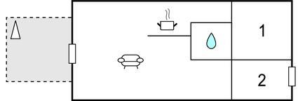 Badezimmer (nr. 1) - WC. Warmes und kaltes Wasser. Dusche